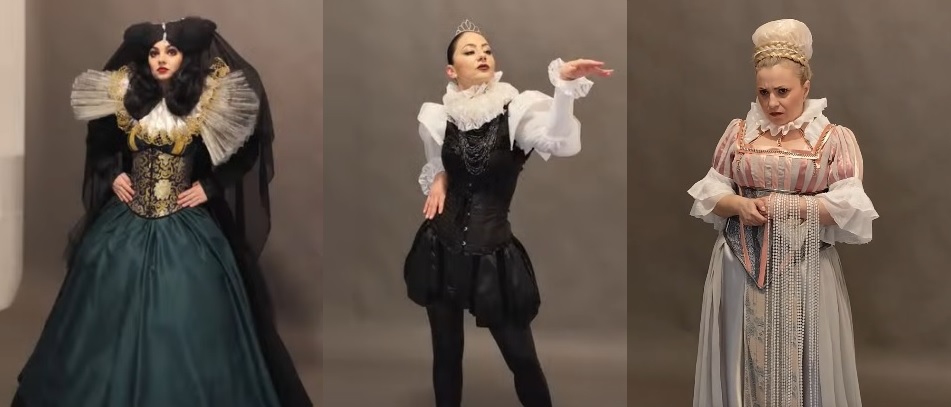 Decorurile sunt create de Előd Golicza, costumele de Cristina Breteanu, cu Sound design de Richard Balint. Din distribuţie fac parte actorii: Giorgiana Coman (Regina Smarald), Anca Sigmirean (Prințesa Somon), Alina Leonte (Prințesa Rubin), David Constantinescu (Tăietorul de lemne Maro), Eugen Neag (Tăietorul de lemne Verdemarin), Pavel Sîrghi (Tăietorul de lemne Bleuciel).