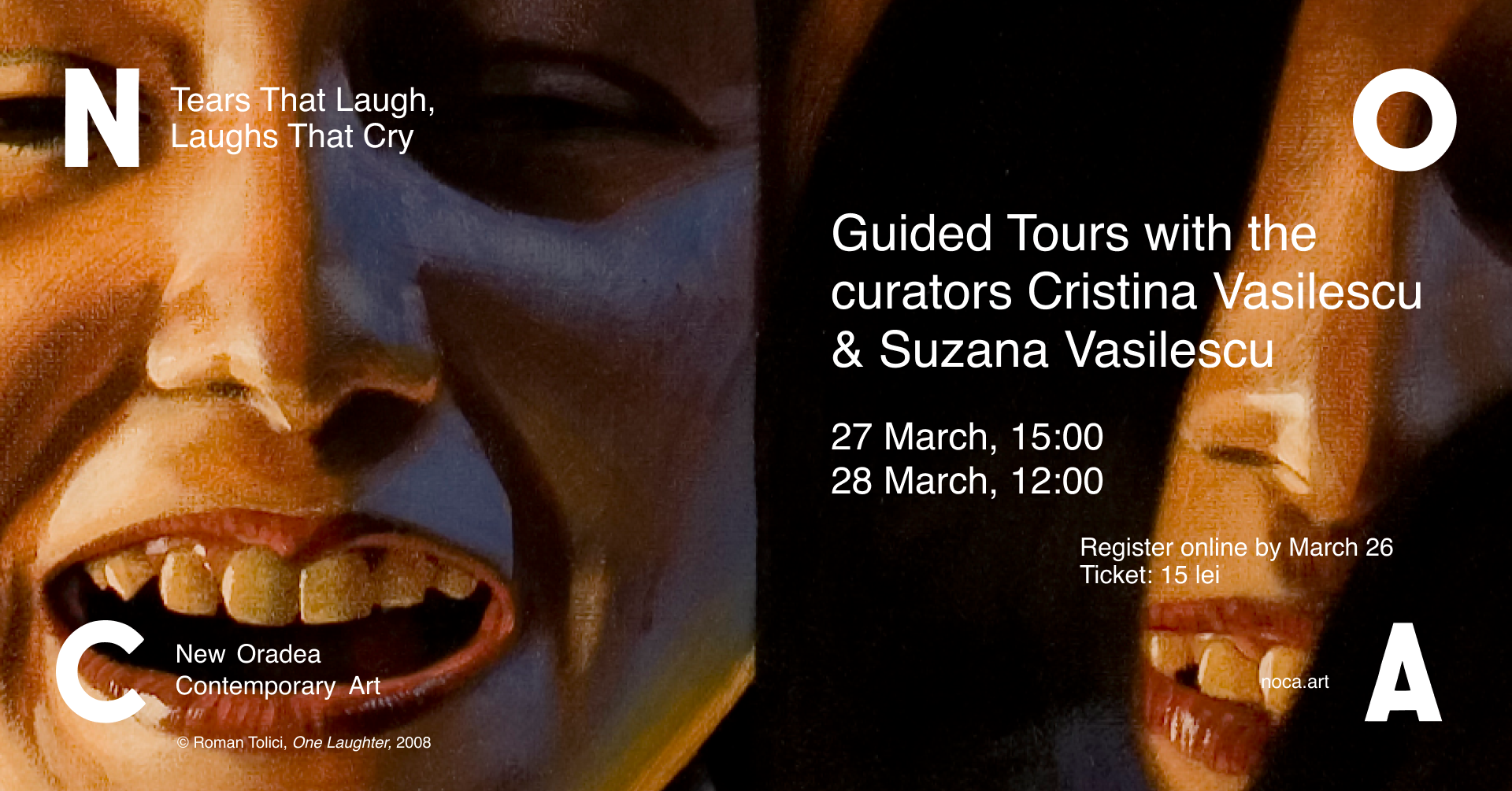 NOCA – New Oradea Contemporary Art deschide, în 27 martie, cea de-a doua expoziție din programul său curatorial, intitulată „Tears That Laugh, Laughs That Cry / Lacrimi care râd, râsete care plâng”. Expoziția explorează spațiul fragil dintre cele două emoții care, departe de a fi opuse, se pot intersecta și transforma reciproc.