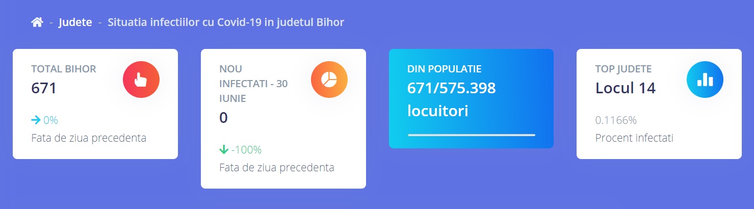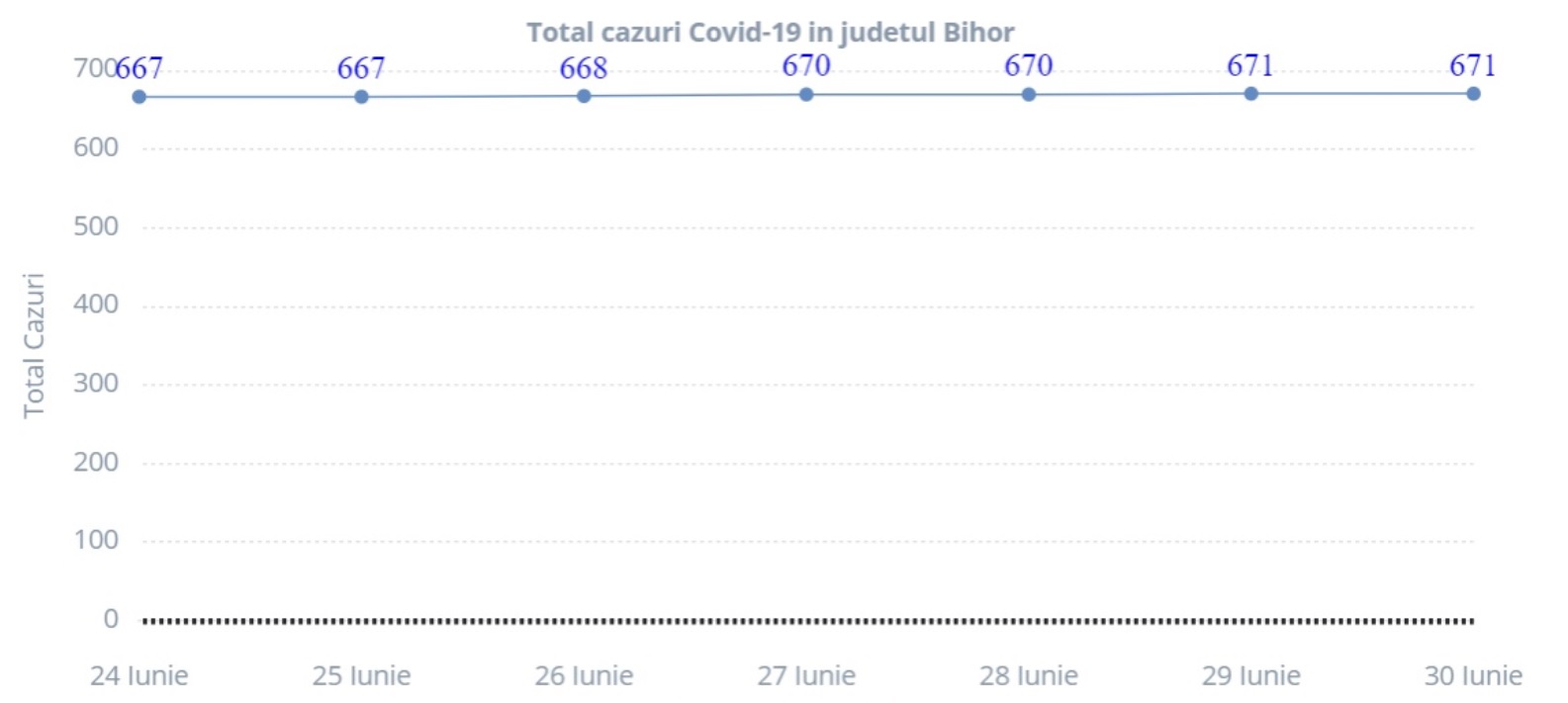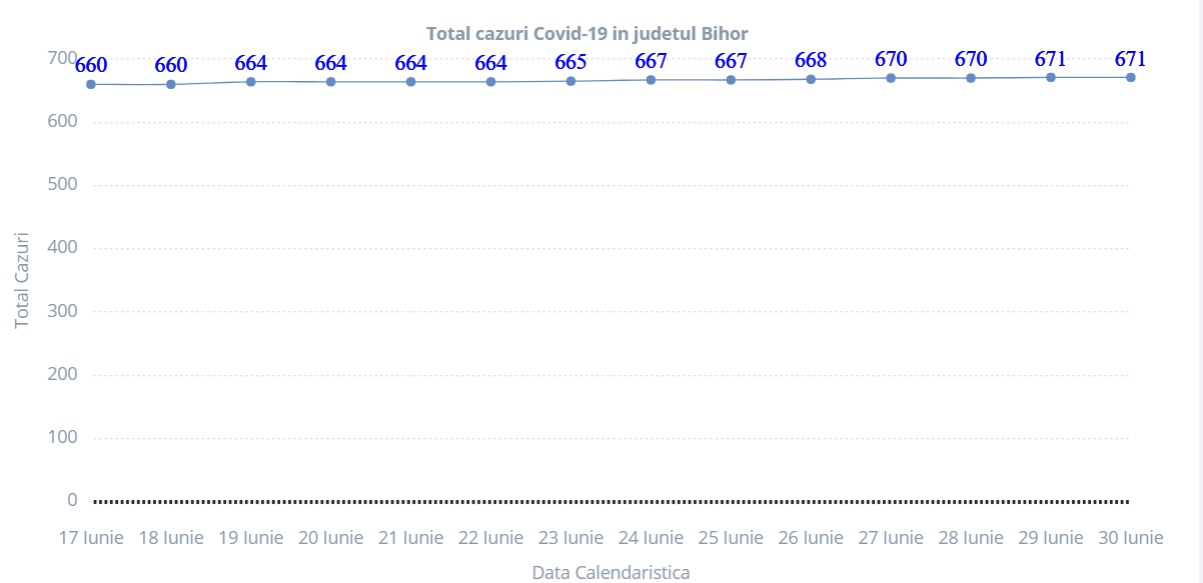 În ultimele 7 zile, în Bihor au fost confirmate doar patru cazuri de infecție coronavirus. Numărul total de cazuri, până în acest moment este de 671, după ce, în ultimele 24 de ore nu au fost găsite cazuri noi de infectare în Bihor.