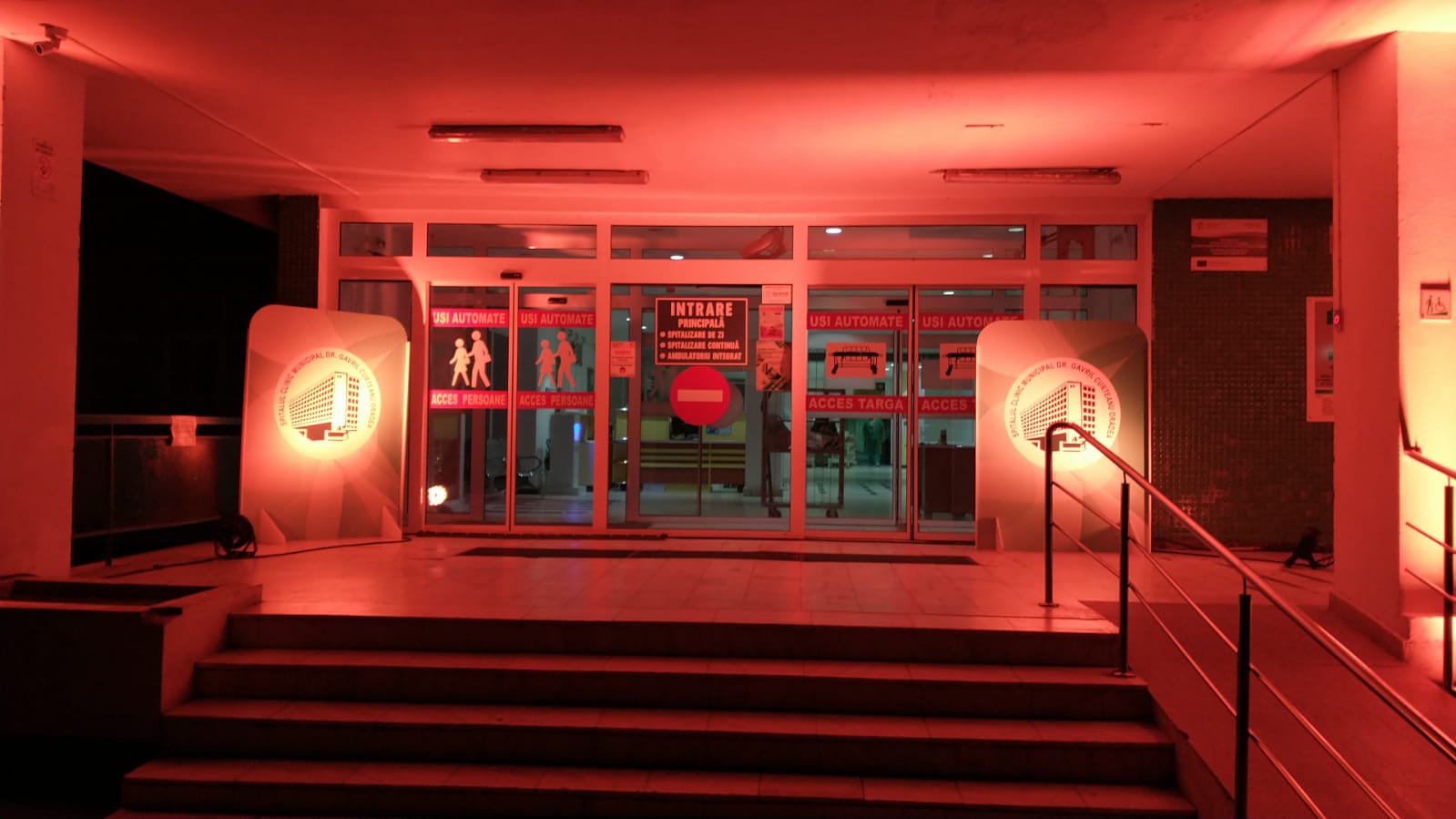 Una peste alta, tot pentru marcarea Zilei Siguranței Pacientului, sâmbătă seara, timp de 2 ore, Spitalul Curteanu a fost colorat în portocaliu, pentru a lumina fațadele clădirilor Spitalului Curteanu și a clădirii Maternității ce aparține de Spitalul Județean.