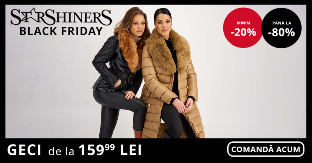 A ÎNCEPUT BLACK FRIDAY LA STARSHINERS! REDUCERILE pe bune au început la StarShinerS.ro și în magazinul nostru fizic, iar tu te bucuri de cele mai mici prețuri din an la toate articolele de pe site, peste 20.000!