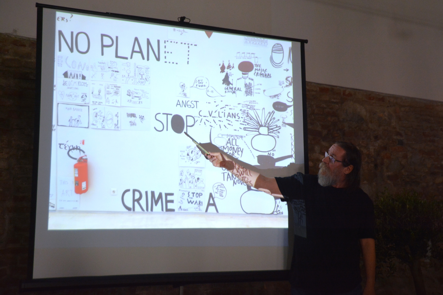 Artistul Dan Perjovschi, unul dintre cei mai mari artişti români, a fost invitat la un „artist talk” de către Fundaţia Comunitară Oradea. Evenimentul a avut loc luni seara în Cetatea Oradea, sala F, intrarea fiind gratuită şi pe bază de înscrieri.