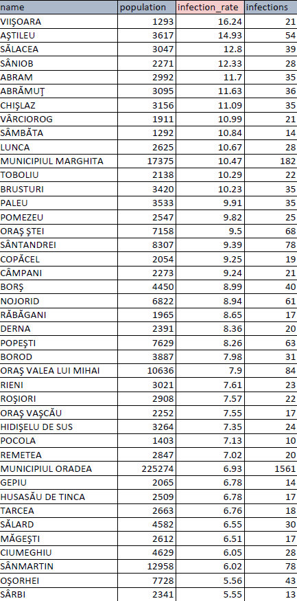 Incidența în Oradea a scăzut joi, sub pragul de 7‰, după ce miercuri înregistra rata de infectare de 7.16‰. Astfel incidența municipiului înregistrată joi este de 6.93‰.