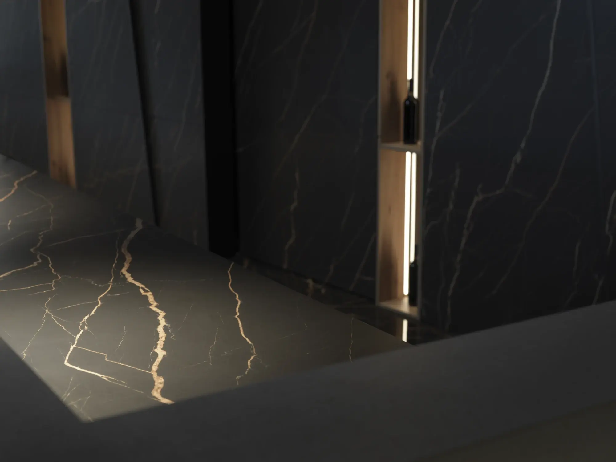 În livinguri, băi sau bucătării, acest tip de placare contribuie la crearea unei atmosfere moderne și minimaliste. Suprafețele continue evidențiază textura materialului — fie că vorbim despre marmură reinterpretată, piatră naturală sau finisaje inspirate din beton.