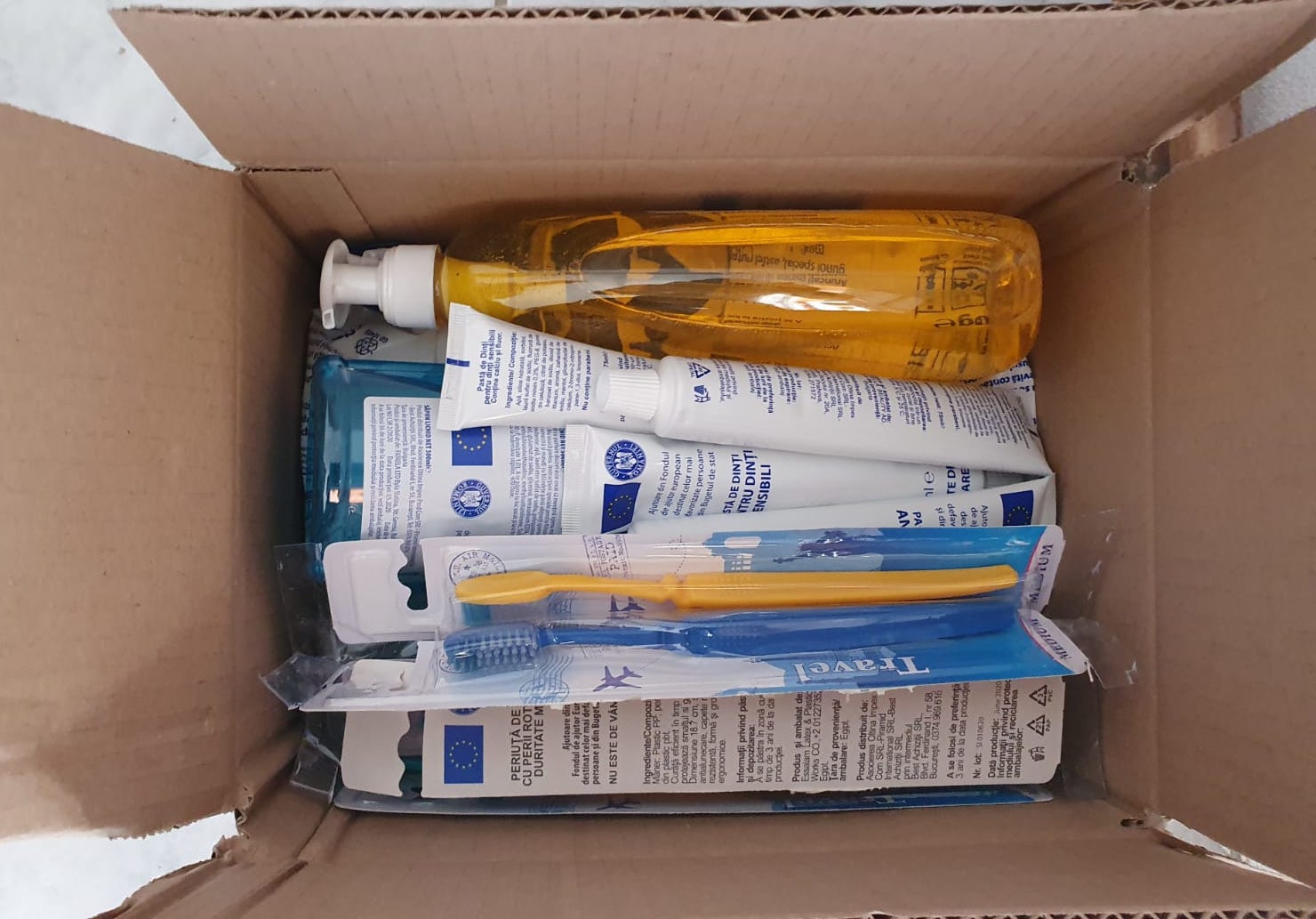 Fiecare beneficiar va primi câte 1 cutie cu produse de igienă constând în: