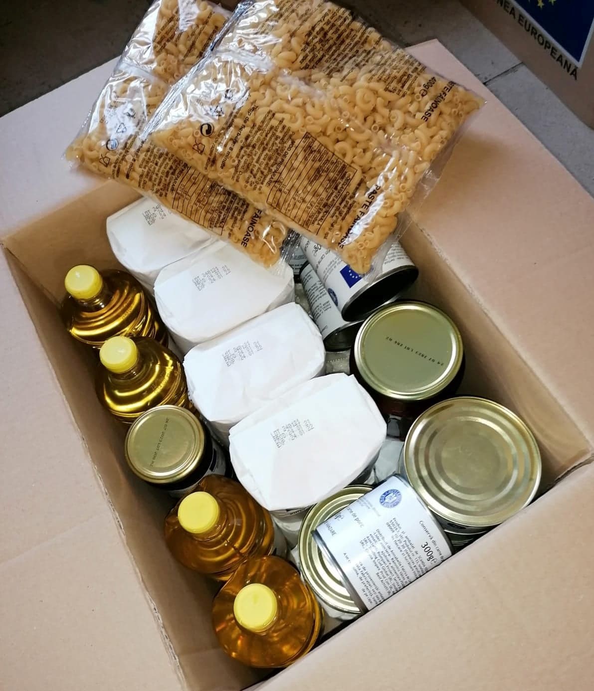 Şi 1 cutie cu produse alimentare constând în