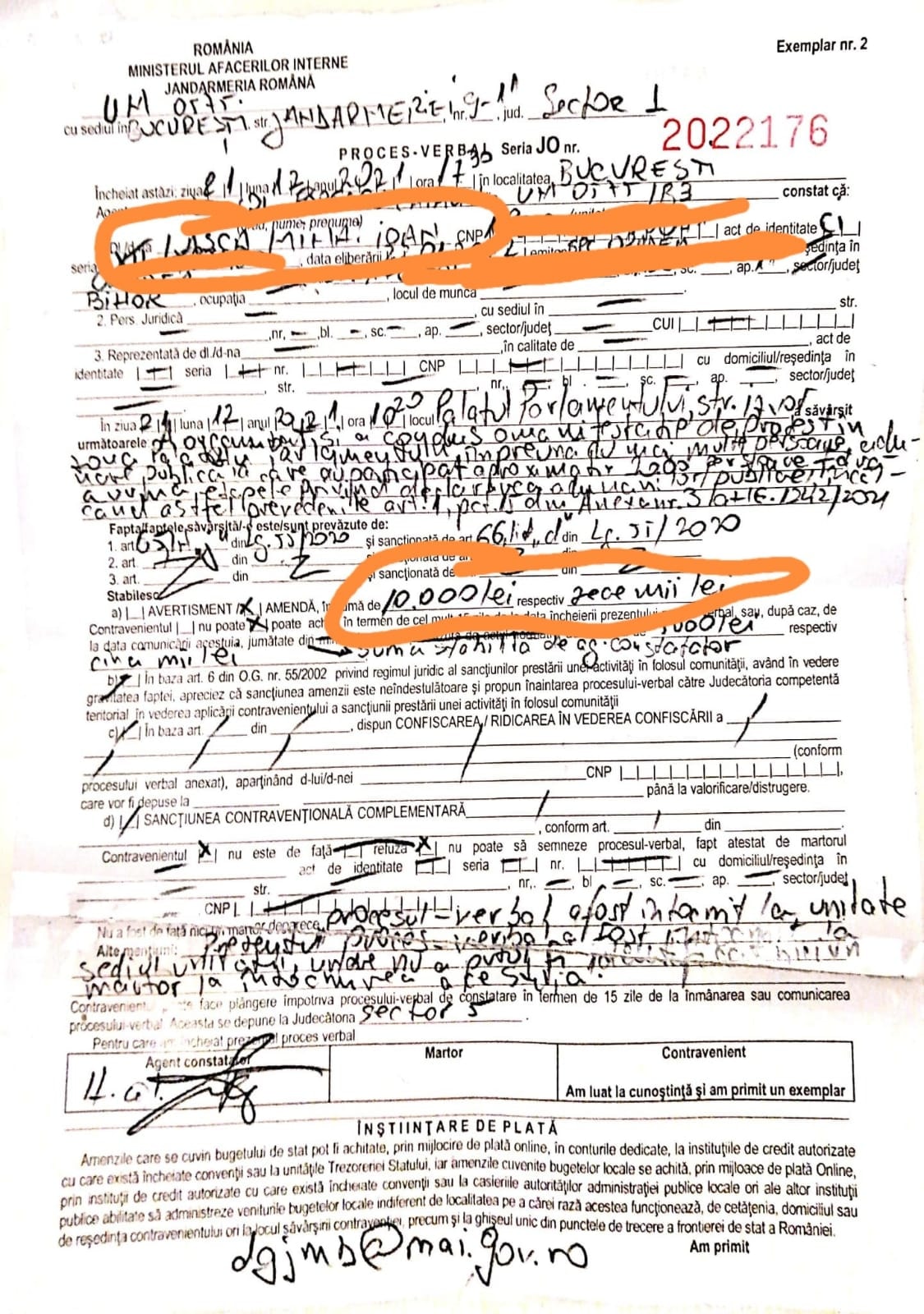 „Slugile de serviciu din Jandarmeria Română mi-au trimis o amendă contravențională în valoare de 10.000 lei inventândandu-mi calitatea de organizator al protestului din București din fața Parlamentului din data de 21 decembrie 2021″, a scris Lasca pe Facebook.