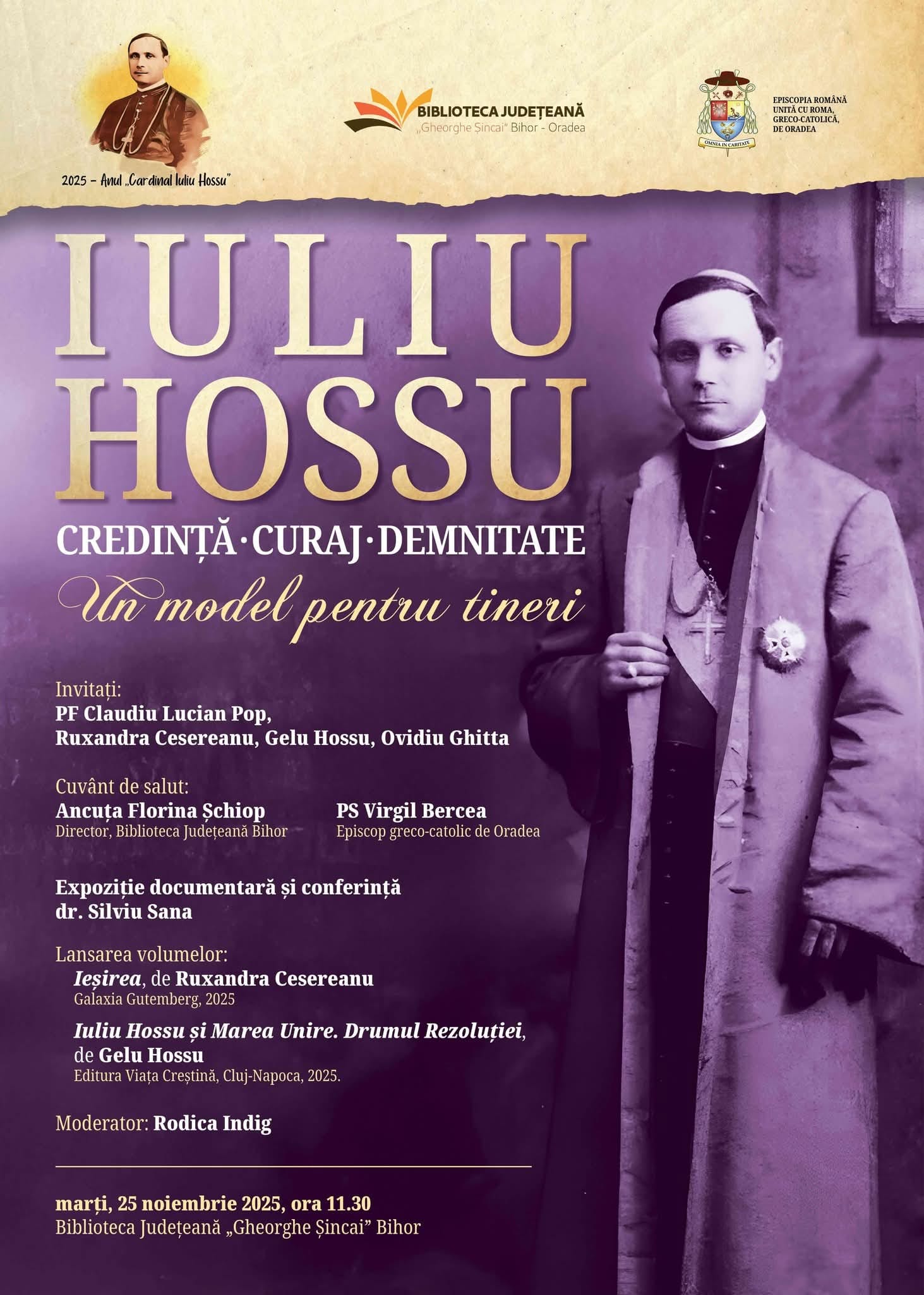 Sub titlul „Iuliu Hossu – credință, curaj, demnitate. Un model pentru tineri”, manifestarea își propune să readucă în atenția publicului figura marcantă a cardinalului, vestitor al Marii Uniri și simbol al demnității românești.