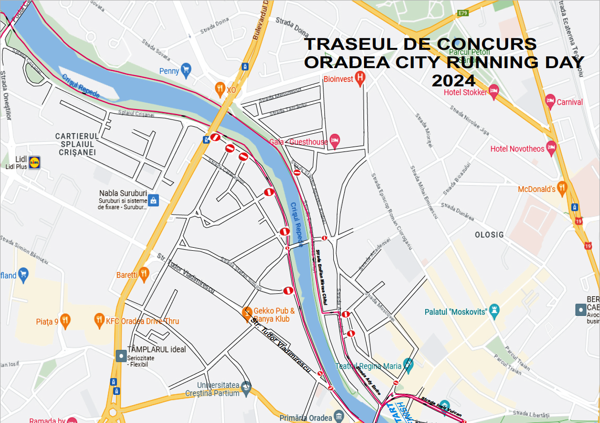 - Restricții de circulație pentru desfășurarea competiției sportive „Oradea City Running Day”, care vor fi implementate duminică, 22 septembrie, între orele 6:00 – 15:00, în Piața Ferdinand, pe următorul traseu: Piața Ferdinand – strada Iosif Vulcan – întoarcere spre Piața Ferdinand – strada Ady Endre – strada Malului – strada E.M. Chitul – malul drept al Crișului Repede – Podul Carol I – trecere pe sub pod – dreapta pentru urcare pe pod – urcare pe pod și dreapta spre terenurile de tenis – malul Crișului – trecere pe sub Podul Carol I pe malul drept al Crișului Repede – strada Principatelor Unite – trotuar – Podul Sfântul Ladislau – Piața Regele Ferdinand. Evenimentul va aduna peste 500 de sportivi din țară și din străinătate. Solicitantul este ACS Xterra Sport.