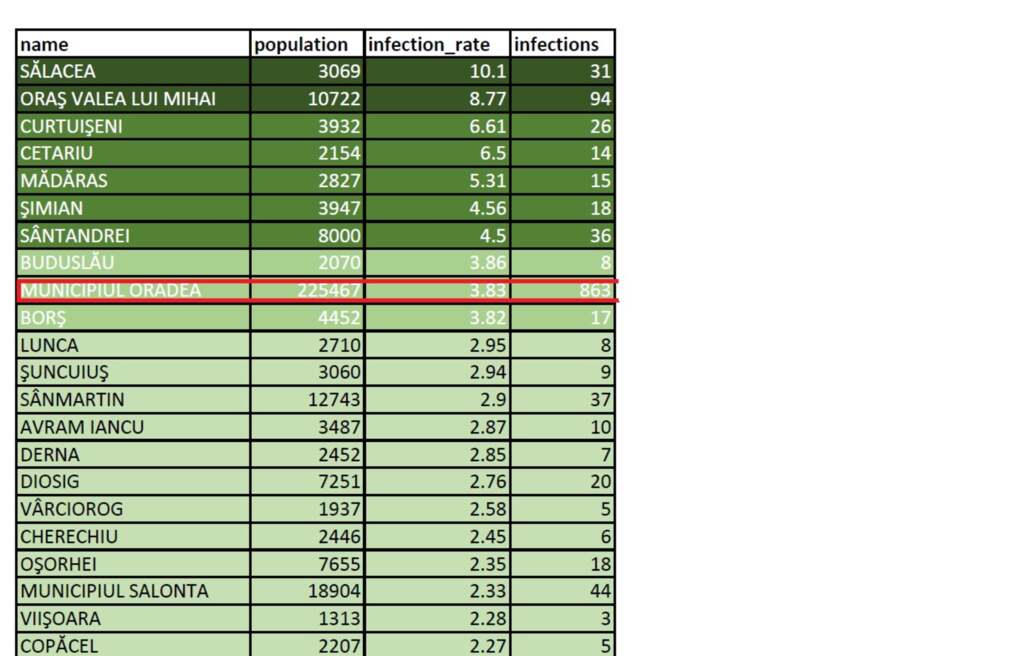 Adica RAHAR ARAFUT habar nu are de rata de infectare la Oradea Mare.
