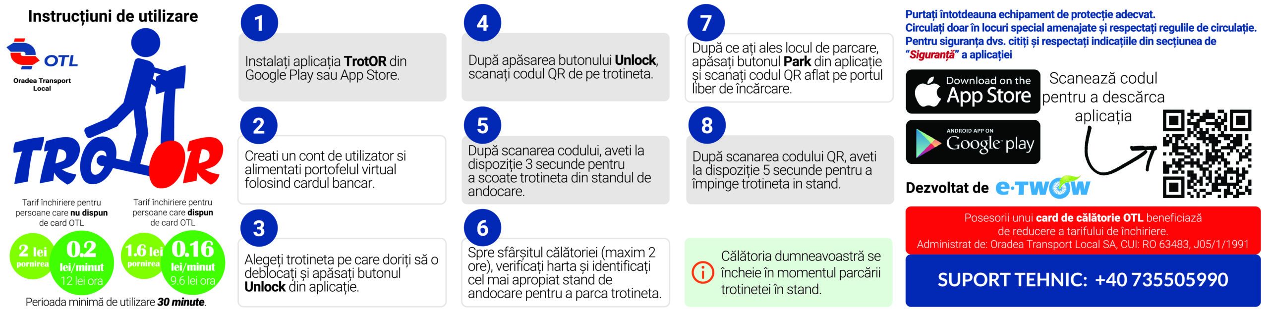 După modelul sistemelor din alte orașe, utilizatorii interesați să închirieze trotineta trebuie să descarce pe telefonul mobil aplicaţia „TrotOR” din Magazin Play sau App Store.
