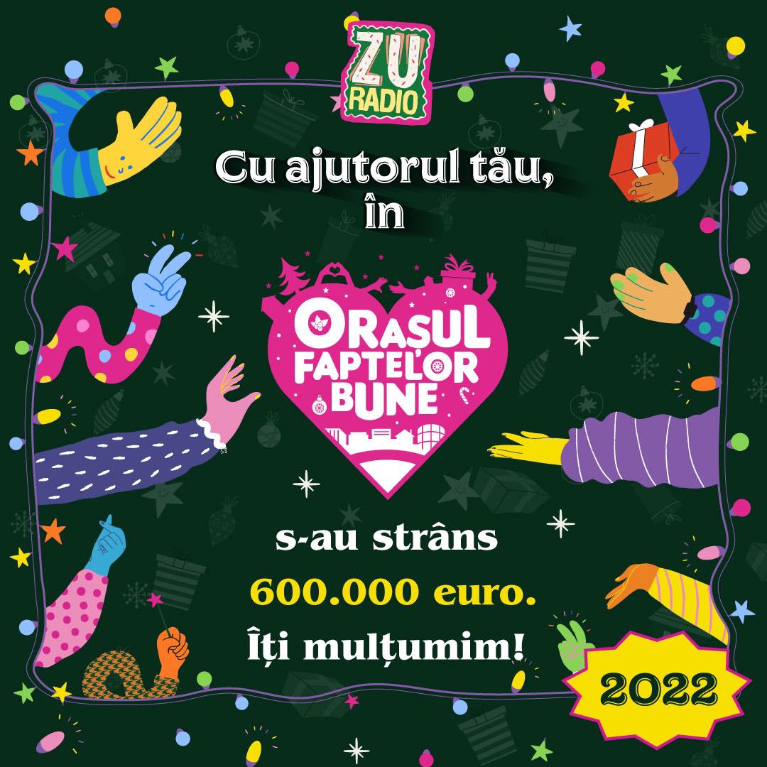 600.000 de euro s-au strâns în campania Orașul Faptelor Bune, ediția 2022. Nu conteniți să ne uimiți în fiecare an cât de frumoși și darnici sunteți!,” este precizat într-o postare de pe pagina Radio Zu.