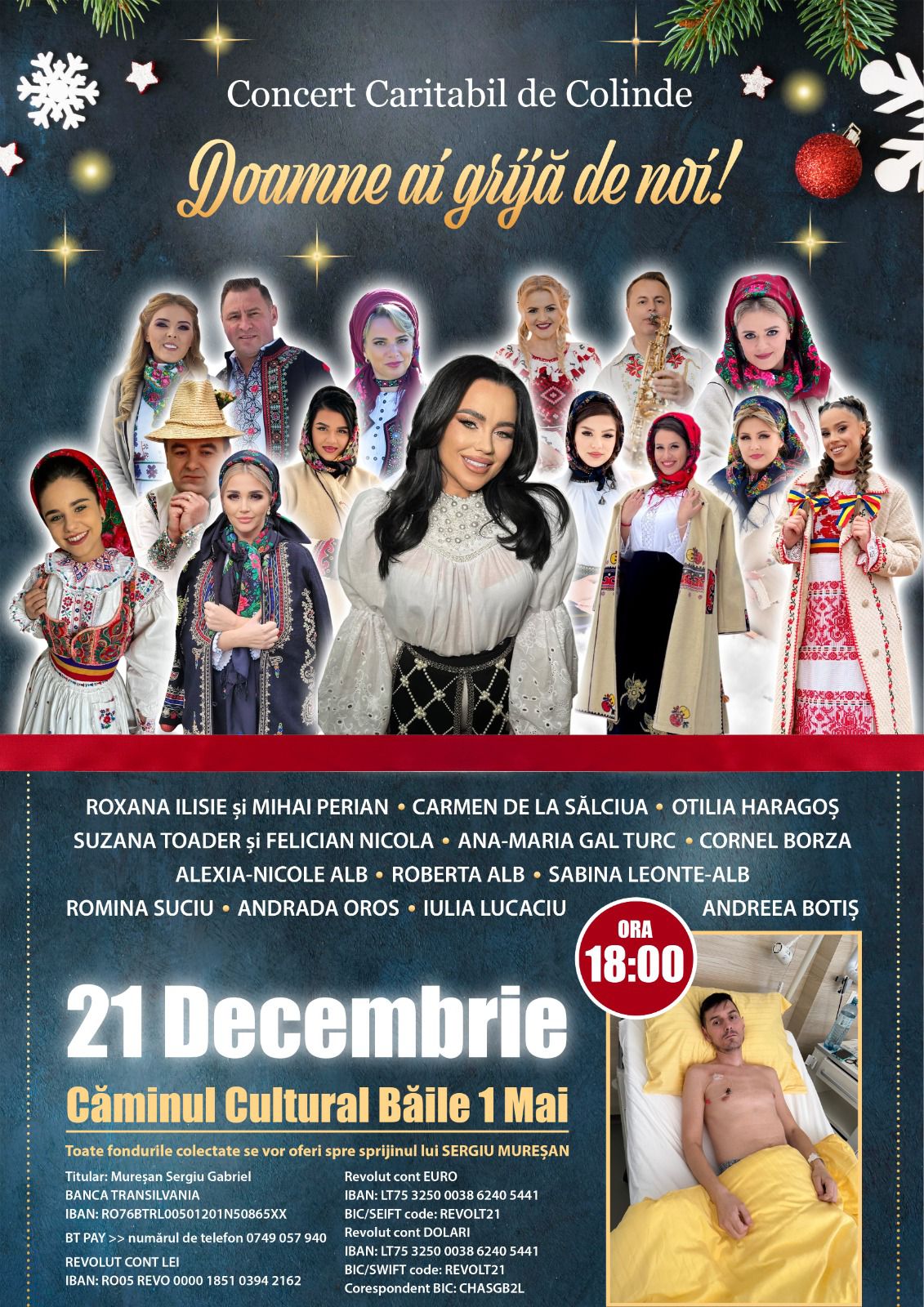 Mai mulți artiști și-au dat mâna și au sărit în ajutorul lui Sergiu. Un concert caritabil va avea loc în 21 decembrie la Căminul Cultural din Băile 1 Mai.