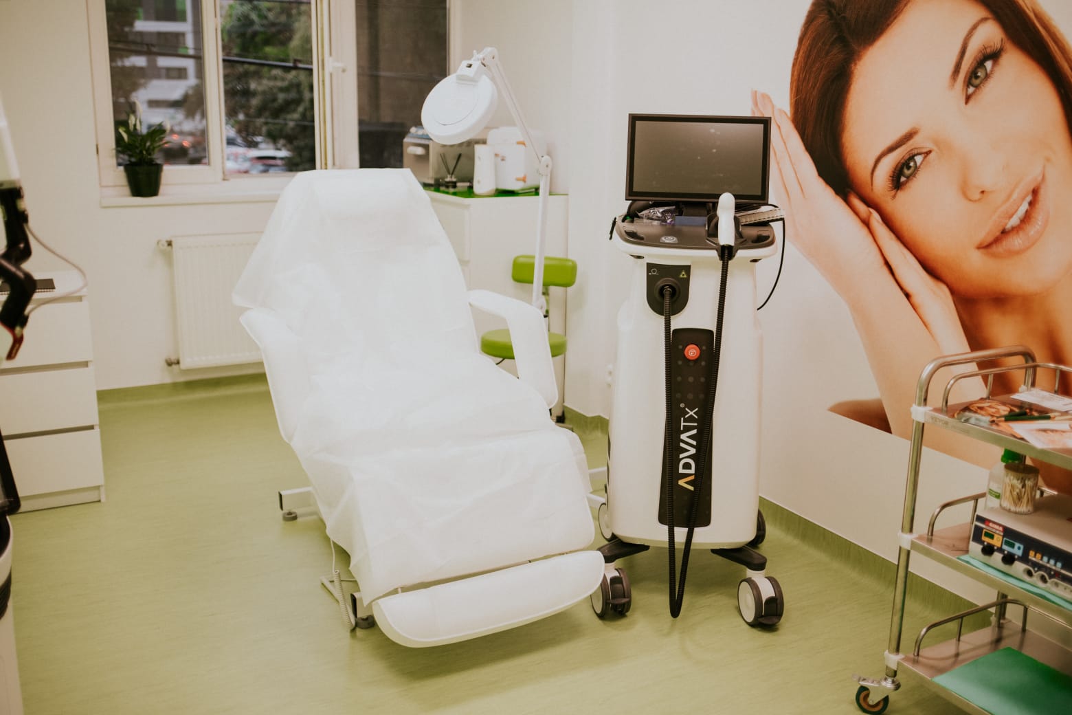 - Tratamente cu Laser – Folosite pentru epilare definitivă, rejuvenare facială, tratarea leziunilor pigmentare, tratarea cicatricilor și tratarea acneei. Tehnologia Laser permite rezultate rapide și eficiente, cu minim de disconfort.