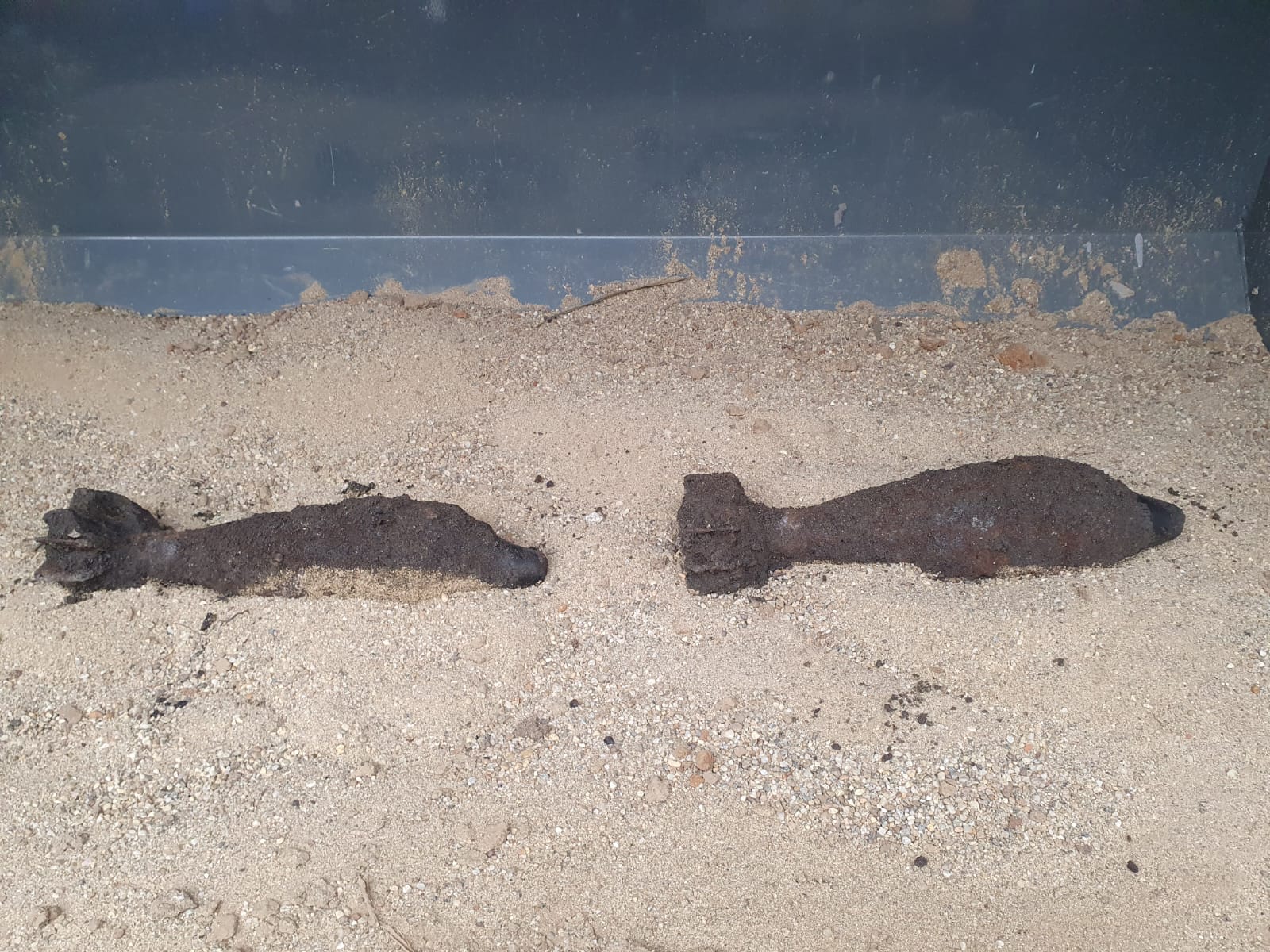 Ajunși la locul indicat de apelantul numărului unic 112, pompierii militari au identificat două bombe de artilerie, de calibru 82 milimetri, în stare de funcționare