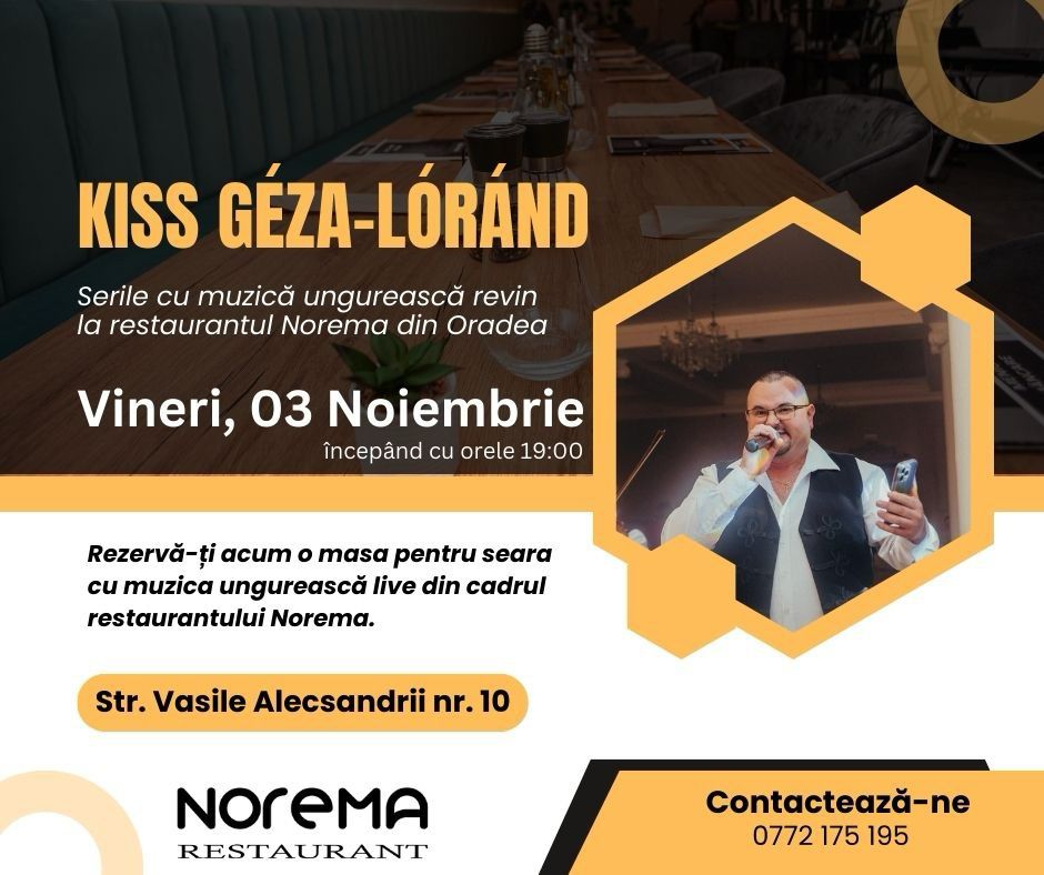 Prima seara va fi oferită de invitatul special, Kiss Géza-Lóránd, vineri, 3 noiembrie începând cu orele 19:00.