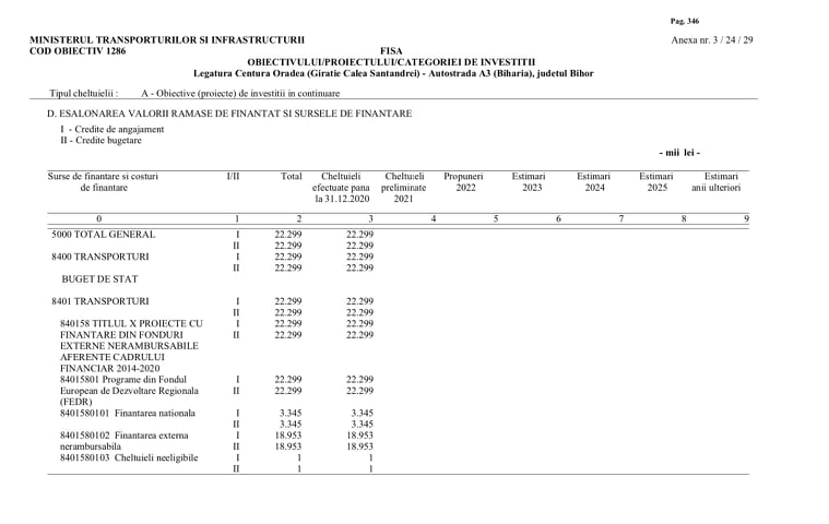 Guvernul a aprobat ieri proiectul de buget pe 2022. “Avem pe masa ședinței de Guvern bugetul ce include cea mai mare alocare pentru investiții din ultimii 32 de ani. Fondurile însumează aproximativ 88,8 miliarde de lei și reprezintă dublul sumei investitiilor realizate în România în anul 2019.”, a declarat luni premierul Nicolae Ciucă, potrivit Hotnews.ro. Printre investițiile care vor primi finanțare în cursul anului viitor, anunțate de Ciucă, se numără și austostrada Nădășelu-Suplacu de Barcău-Borș, inclusiv centura Oradea. Cu toate astea, în anexa din “Documentul sinteză privind politicile și programele bugetare pe termen mediu ale ordonatorilor principali de credite ale ordonatorilor principali de credite – Ministerul Transportului și Infrastructurii”, alocările prevăzute pentru acest obiectiv pentru 2022 sunt 0. Drumul de legătură Oradea – A3 apare și într-o altă anexă – “Fișa proiectului finanțat/propus la finanțare în cadrul programelor aferente Politicii de Coeziunea a UE., Politicilor Comune Agricola și de Pescuit și altor facilități și instrumente postaderare”, unde drumul de legătură Oradea – A3 apare alături de proiectul “Autostrada Transilvania, secțiunea Nușfalău – Biharia, inclusiv drumul de legătură cu municipiul Oradea”, unde întradevăr sunt prevăzute fonduri pe anul viitor. Însă reprezentanții USR spun că asta nu înseamnă că va și primi finanțare. “Proiectul nu e finanțat, asta e fișa generală. La felul cum e stabilit acum, doar ulterior se pot redirecționa bani către drumul de legătură, cu acordul Finanțelor. Fișa e una generală, de proiect”, a transmis USR Bihor.