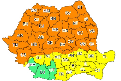 Meteorologii au emis luni dimineața o nouă alertă de cod portocaliu. Aceasta a intrat în vigoare luni la ora 10:00 și este valabilă până marți dimineața, la ora 10:00.