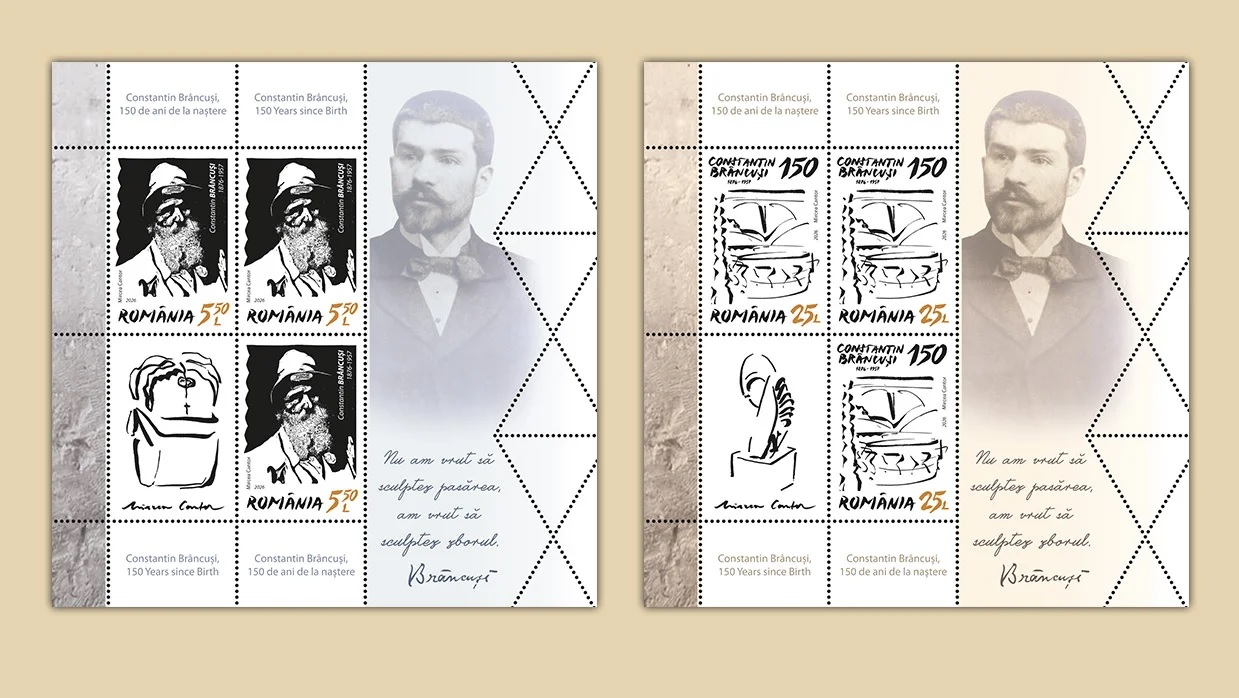 Născut la 19 februarie 1876, la Hobița, județul Gorj, Constantin Brâncuși este considerat unul dintre cei mai mari sculptori ai secolului XX și un pionier al artei moderne. Şi pentru că Anul 2026 a fost instituit oficial drept „Anul Constantin Brâncuși”, Romfilatelia şi Poşta Română îl omagiază pe marele sculptor, dedicându-i emisiunea de mărci poștale „Constantin Brâncuşi, 150 de ani de la naştere”. Aceasta a fost introdusă în circulaţie joi, 19 februarie, data naşterii artistului.