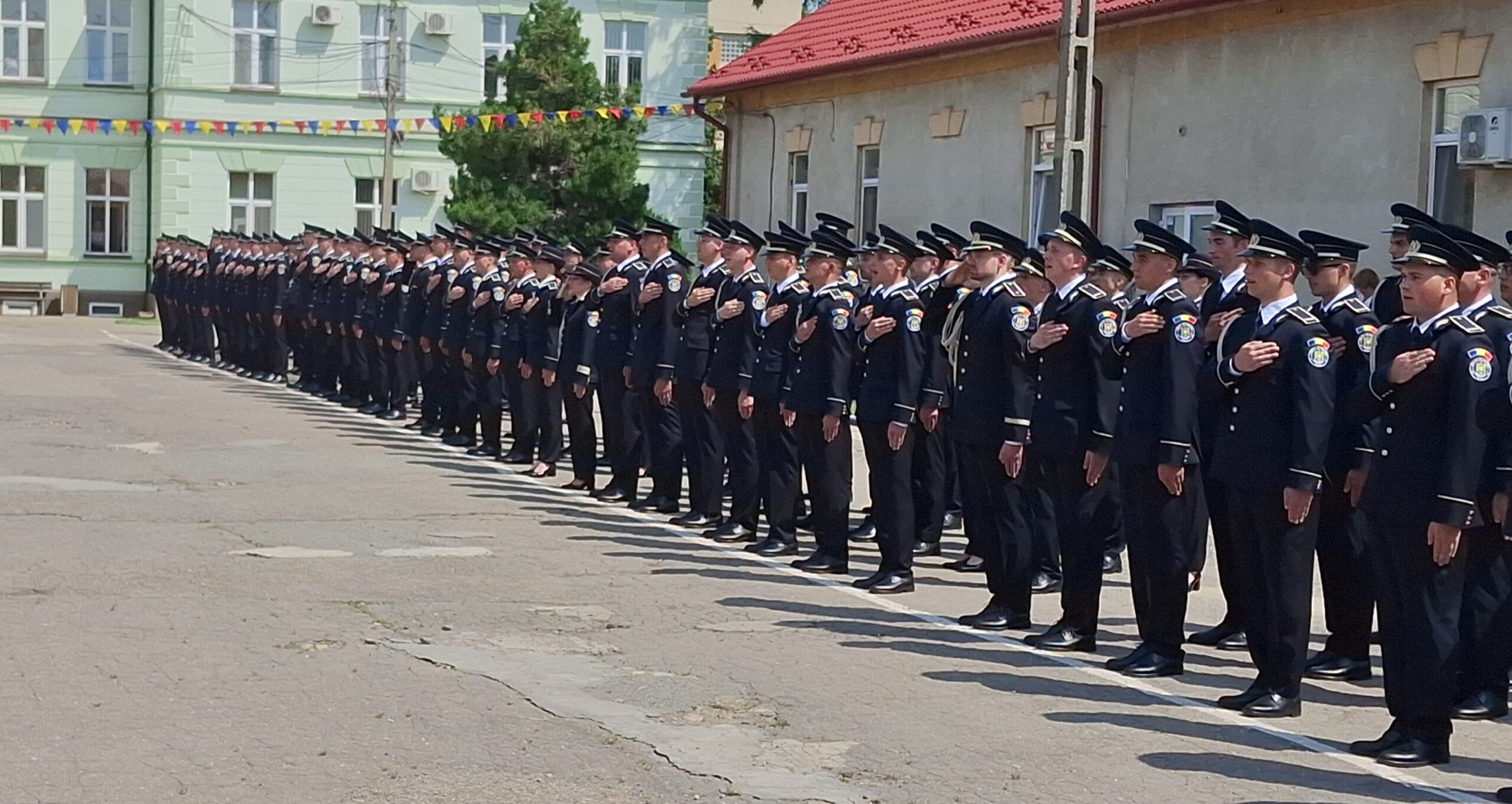 Ceremonialul a început cu întâmpinarea oficialităților, prezentarea onorului, salutarea drapelului de luptă și intonarea Imnului Național. În deschidere, comisar-șef de poliție Felicia-Sanda Voicu, directorul școlii, a felicitat absolvenții și a subliniat că aceștia urmează „să se dedice trup și suflet în slujba României”.