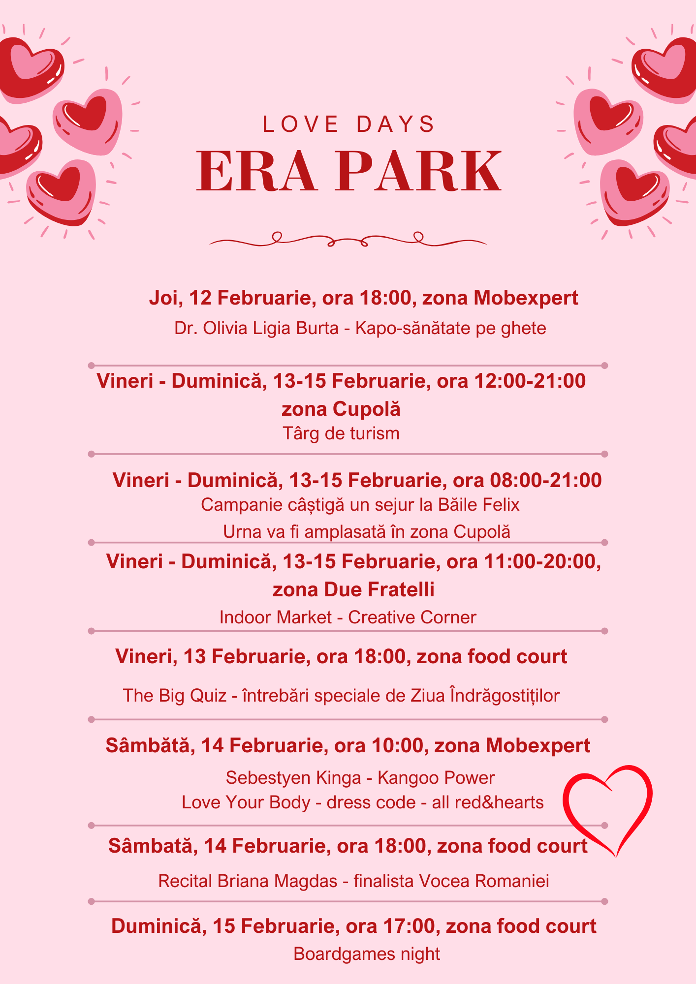 Cu un program divers și activități pentru toate gusturile, ERA Park Oradea își propune să ofere vizitatorilor un weekend memorabil, într-o atmosferă festivă, caldă și plină de energie pozitivă.