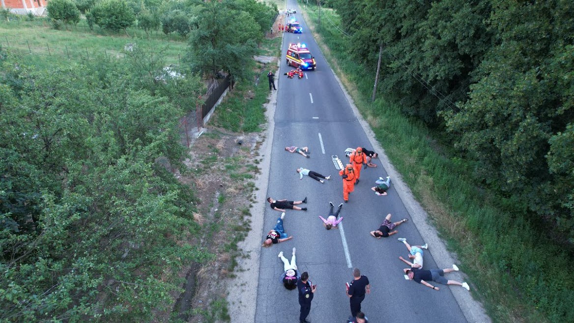 Exercițiul a avut ca scenariu producerea unui accident în localitatea Calea Mare, comuna Lăzăreni, în care au fost implicate o autocisternă care transporta substanțe periculoase și un microbuz 16+1, plin cu persoane,