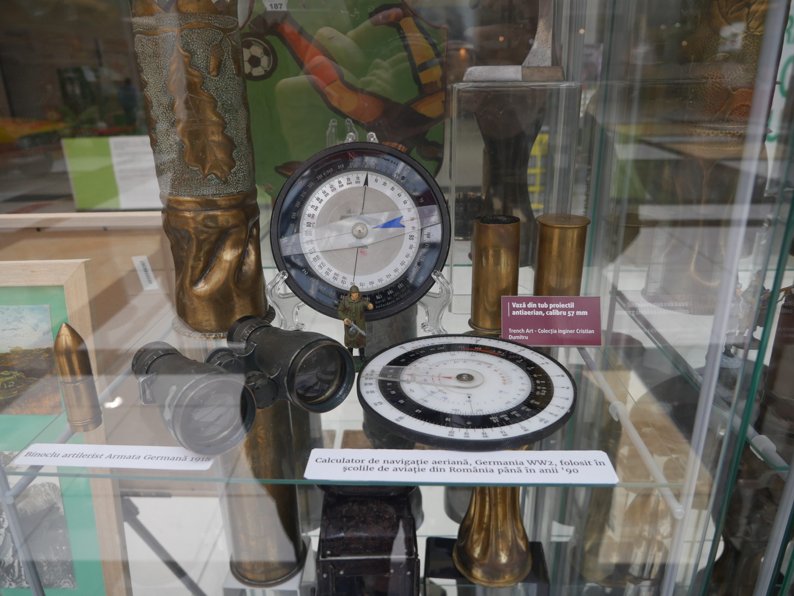 Organizatorii îi sfătuiesc pe vizitatori să nu rateze vaza ornamentată realizată din tub de proiectil de tun oferită soției mareșalului Constantin Prezan de generalul Philippe Henri Joseph ďAnselme, comandantul armatei franceze din Orient. De remarcat este, între altele, și o scrumieră de lut inscripționată cu Regimentul 18 Infanterie Gorj din care a făcut parte și Ecaterina Teodoroiu, dar și o scrumieră realizată din țeavă de tun. Alte obiecte care atrag atenția în expoziție sunt diferite scrumiere realizate din cartușe, grenade, proiectile, bidoane și gamele aparținând soldaților germani, busole, mască de gaze, cască aparținând tanchiștilor din URSS, cască aparținând soldaților americani, lanterne și lămpașuri din primul și al doilea război mondial, etc.