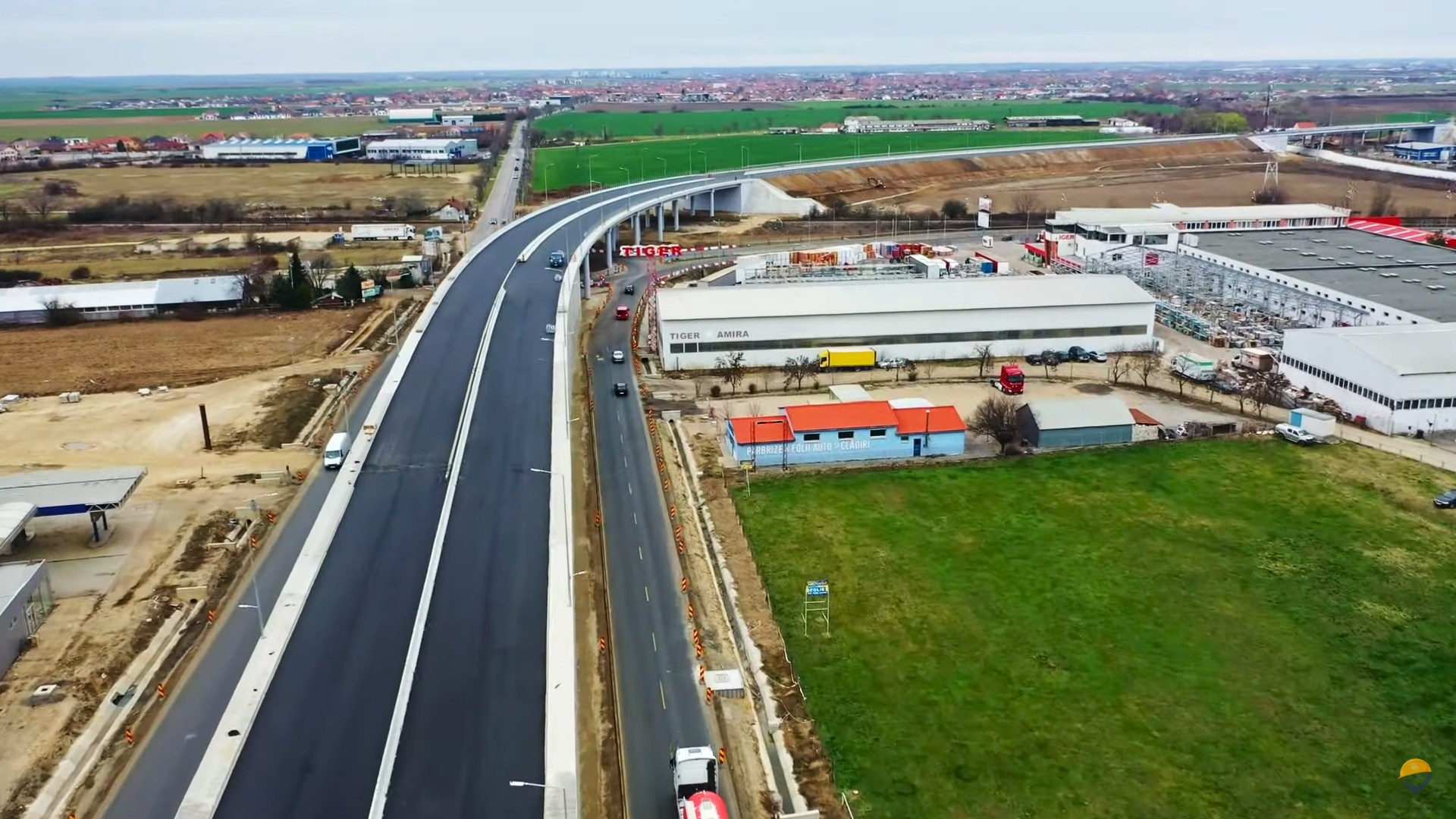 Filmarea arată că pe șantierul drumului se mai lucrează, acum, la montarea elementelor de siguranță și semnalizare – marcaje, indicatoare, parapete de protecție, iluminat, plus „diverse lucrări în afara părții carosabile”.