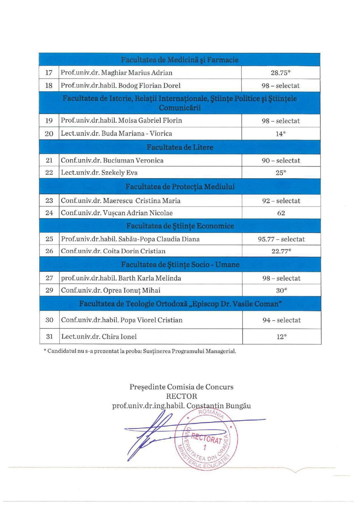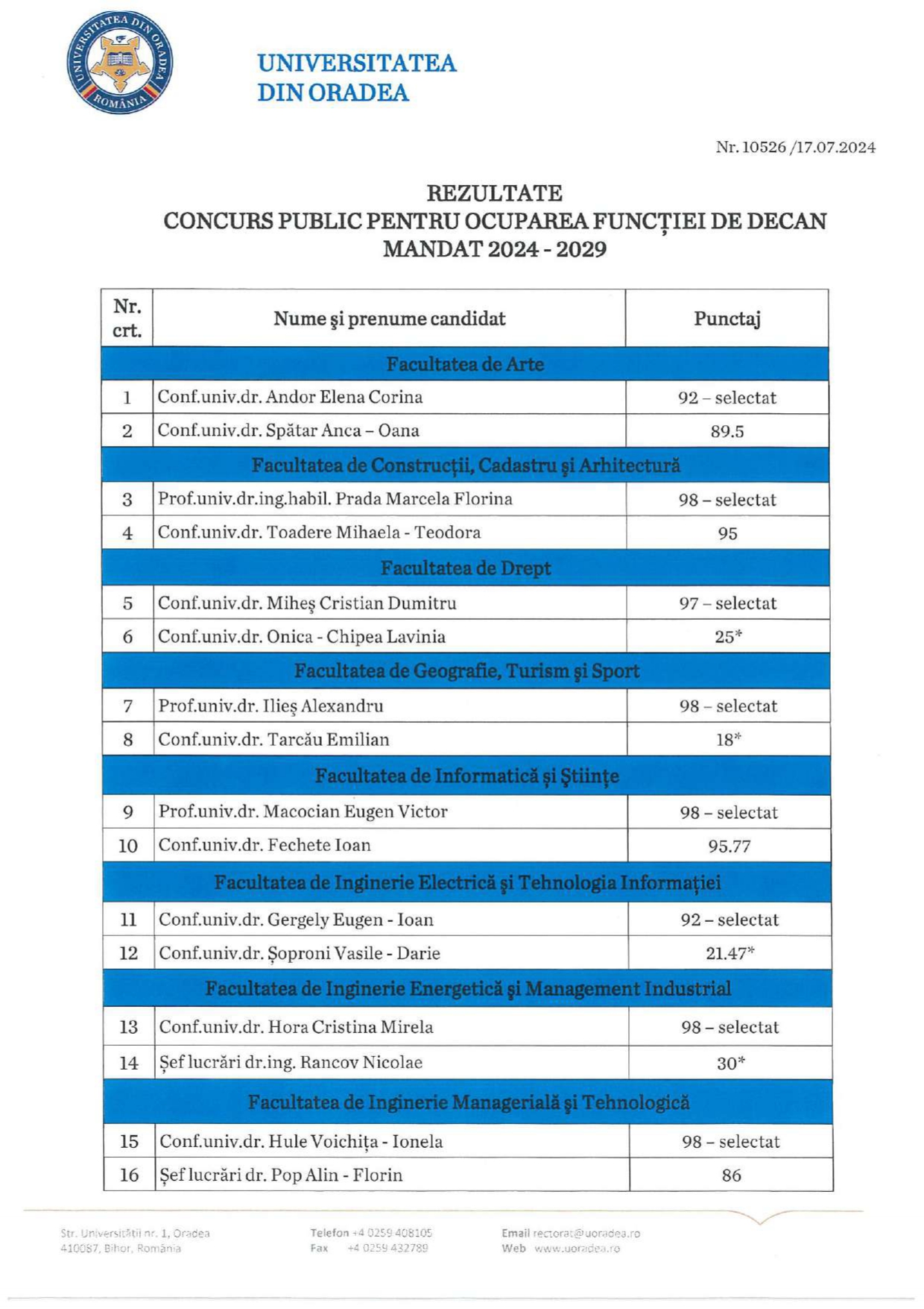 Toate rezultatele alegerilor desfăşurate în cadrul facultăţilor orădene urmează să fie validate de Senatul universitar, în următoarea şedinţă, care va avea loc luni, 22 iulie 2024.