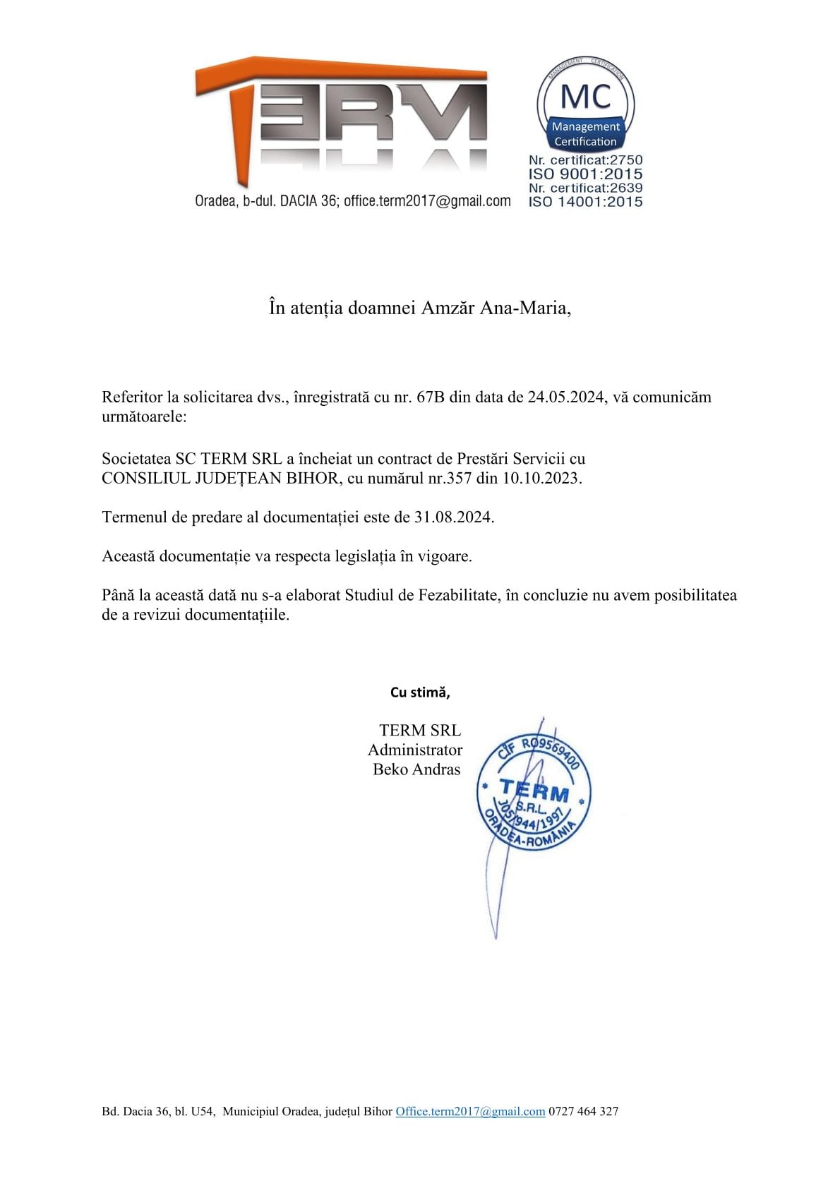 „Surse din cadrul Consiliul Județean Bihor susțin că nu există hărți de detaliu, aspect contrazis atât de răspunsul transmis de TERM SRL unuia dintre membri fondatori ai Asociației pentru Apărarea Dreptului de Proprietate Privată prin care anunțau că termenul limită de predare a documentației de proiect este data de 31 august, cât și de informațiile postate pe grupul Facebook Oșorhei Util în data de 4 septembrie de un cetățean al comunei Fughiu, interesat de potențiala afectare a comunei și a străzii proprii de traiectoria T3”.