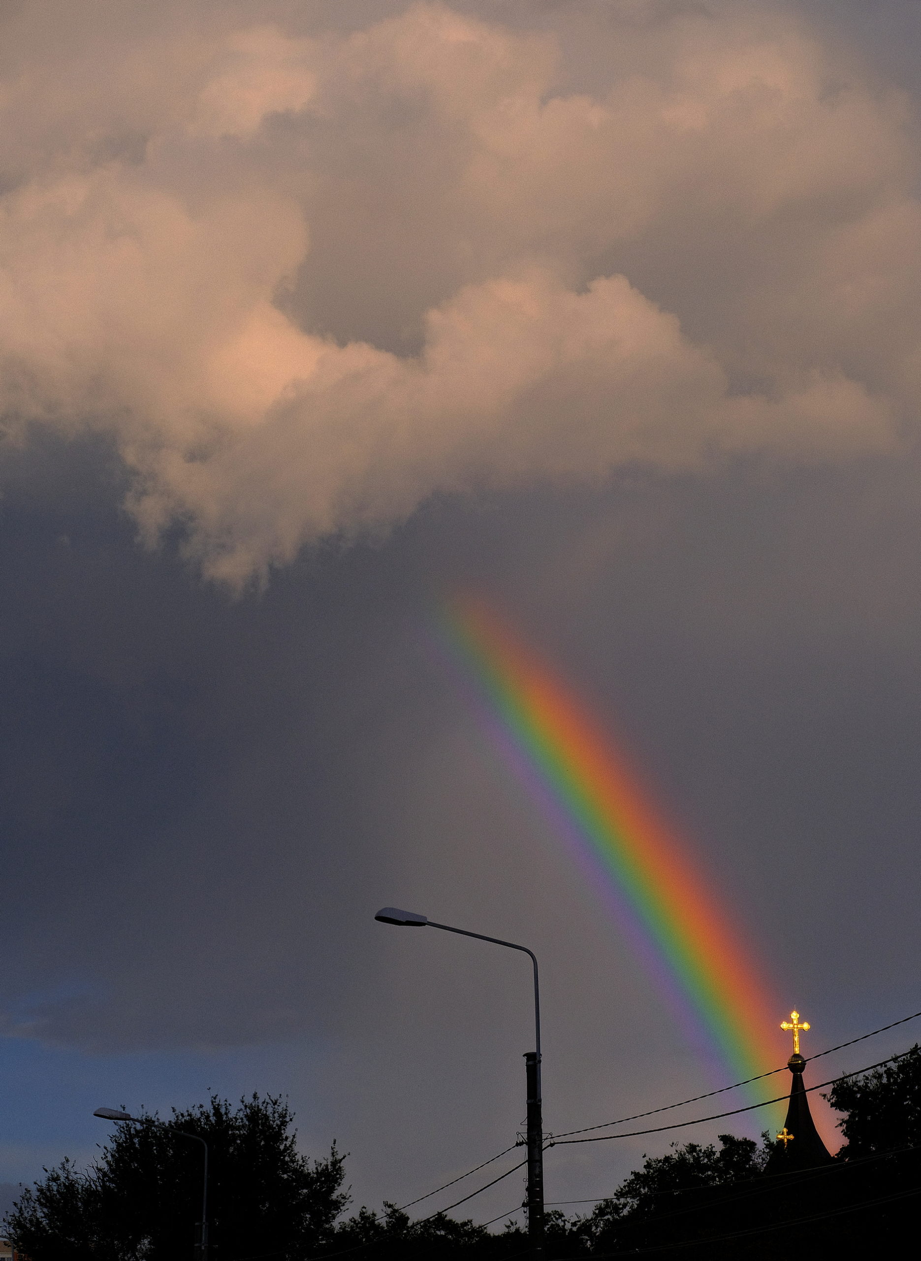 Orădenii au putut admira curcubeul atât sâmbătă, cât și duminică. Mai mult, duminică a putut fi observat un fenomen rar, curcubeul dublu.