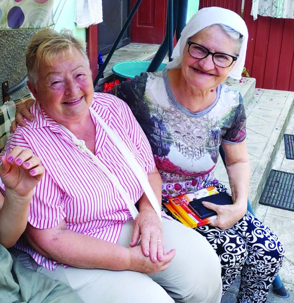 „În fântână este un hidrofor, cu care aducem apa în casă. Însă apa din fântâni nu este bună de băut. De băut, bem apă minerală. Nu avem nimic în satul ăsta”, ne-a spus Maria Comănescu. „Apa de băut și pentru gătit o cumpărăm. Inclusiv animalelor le dau apă îmbuteliată. Mai bine cheltui pe apă, decât pe medicamente”, ne mărturisește vecina Mariei, Anamaria Bumber. Ea a socotit că are nevoie de 60 de litri de apă îmbuteliată săptămânal, pentru consum. „Facem vânzare la magazinul din sat”, glumesc amar cele două femei (Foto).