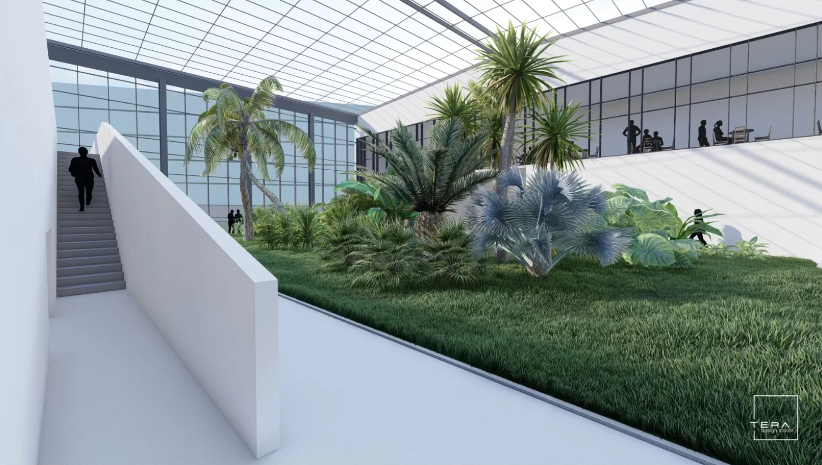Etajul va fi împărțit în trei zone principale: sera; spații administrative, bistro și grupuri sanitare. Pentru a asigura accesibilitatea persoanelor cu dizabilități, proiectul prevede o serie de soluții care să faciliteze accesul și deplasarea în clădire și în grădina urbană adiacentă.
