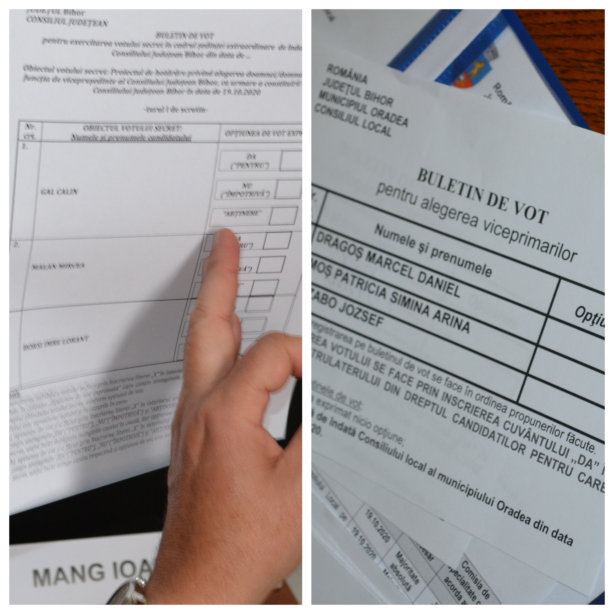 Buletinul de vot de la CJ Bihor vs buletinul de vot de la CL OradeaÎn schimb, secretarul general al Județului, Carmen Soltănel, s-a remarcat prin modul în care a conceput un buletin de vot care a trebuit supra-explicat aleșilor, în contrast cu modul simplu în care a fost conceput buletinul de vot la Consiliul Local Oradea, de către secretarul municipal, Ionel Vila. Președintele Ilie Bolojan a trebuit să intervină, pentru ca situația să nu se complice inutil.
