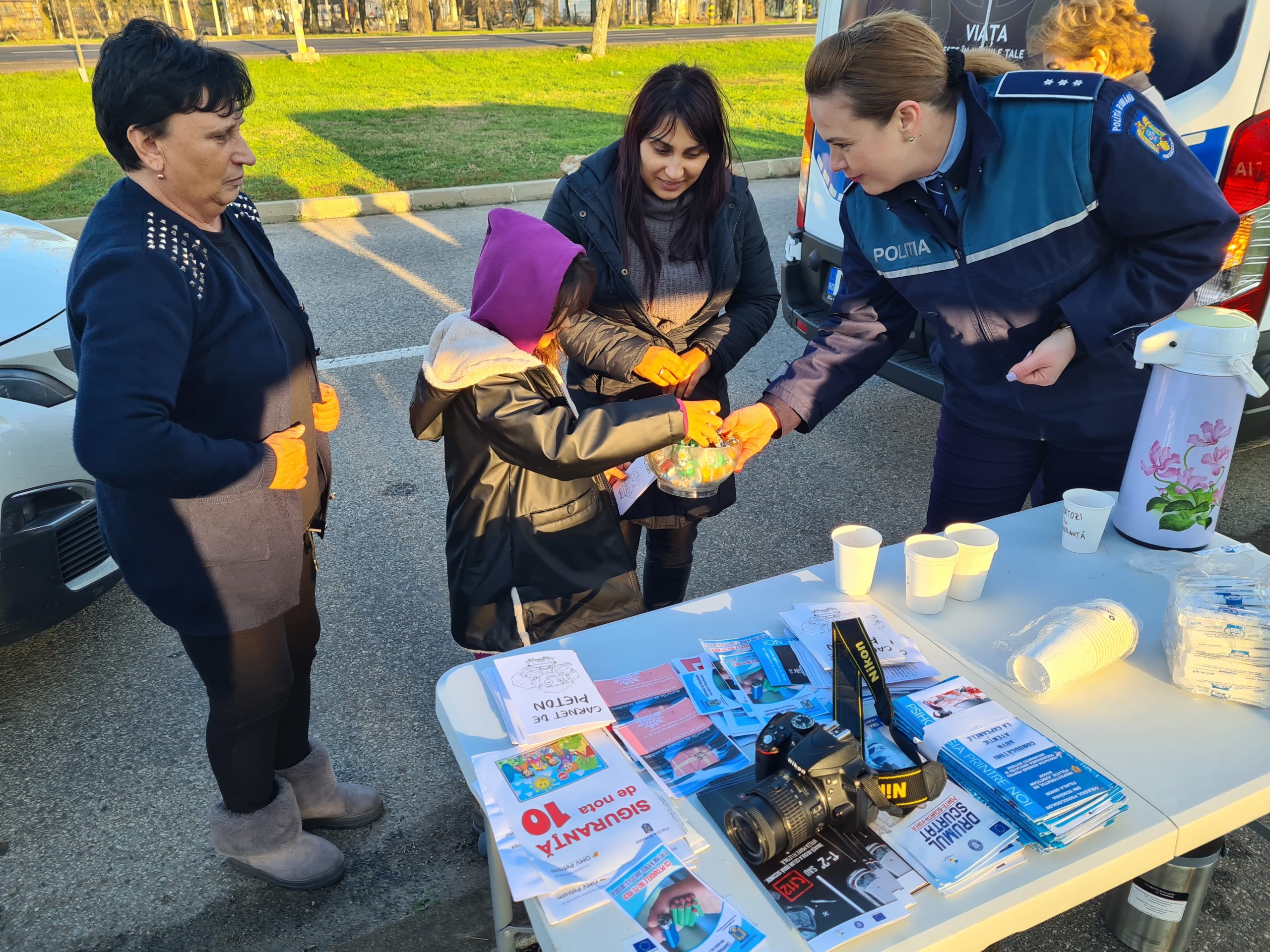 Polițiștii rutieri bihoreni au oprit în trafic autoturismele care au intrat în țară dinspre vama Borș, pe Șoseaua Borșului, înainte de intrarea în municipiul Oradea și i-au servit pe conducătorii auto și pe pasagerii acestora cu ceai cald și cu cafea. Paharele au fost inscripționate cu mesaje preventive cu scopul de a le aminti șoferilor să fie atenți în trafic. De asemenea, copiii au fost întâmpinați de polițiști cu dulciuri și moșuleți din ciocolată.