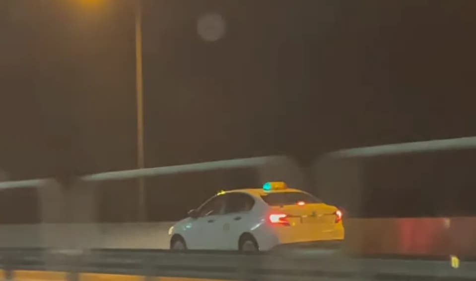 Pe șosea nu se văd alte mașini, dar evident că manevra pune în pericol atât șoferul de taxi și eventualii pasageri, cât și pe ceilalți participanți la trafic.