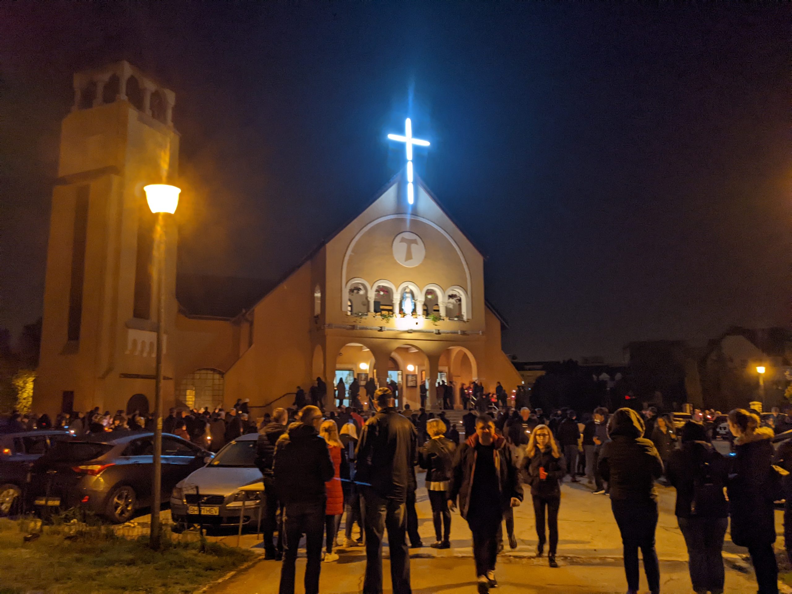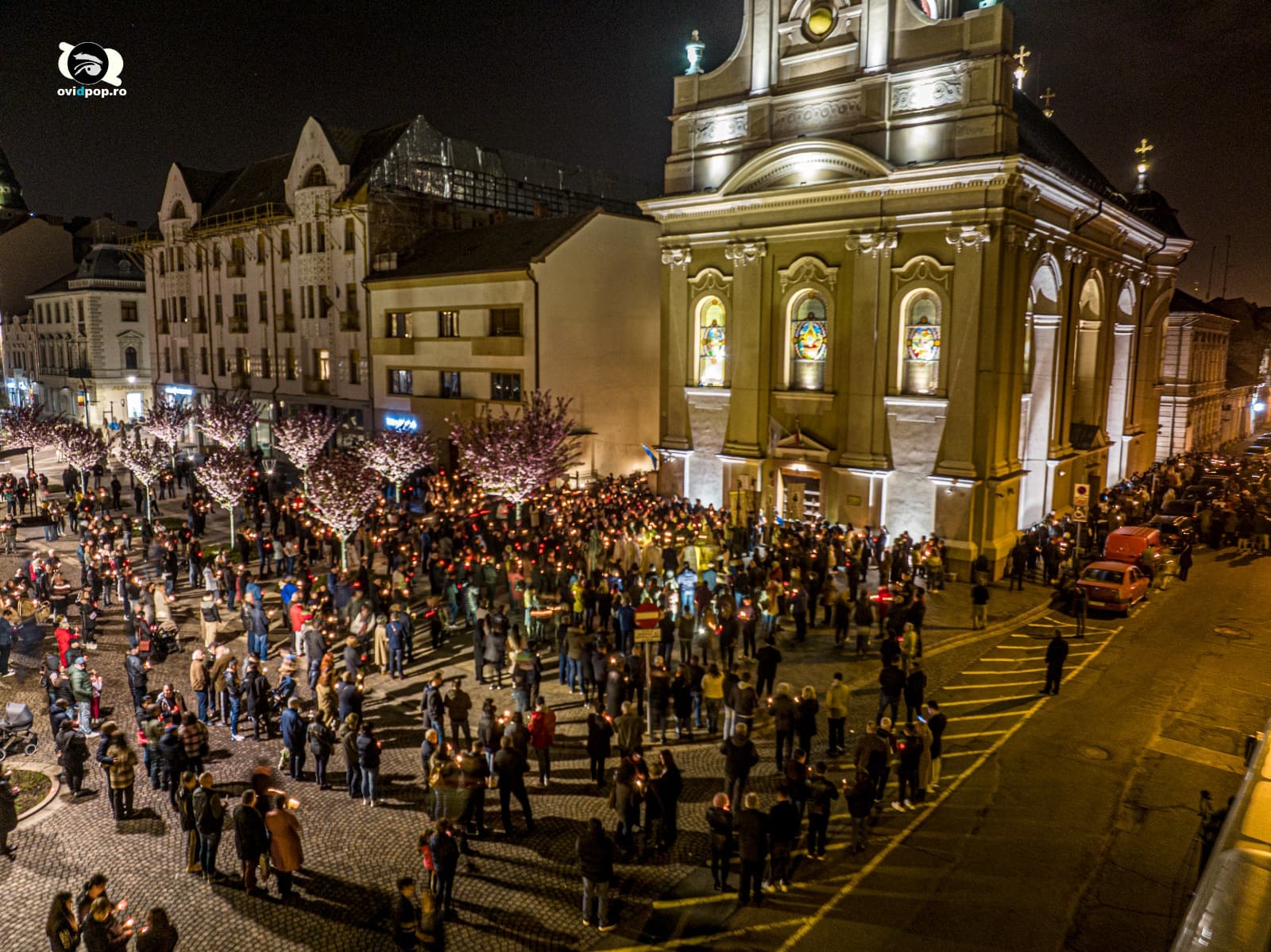 Ca-n fiecare an, slujba Învierii a început mai repede pentru credincioșii care frecventează Sanctuarul Eparhial „Maica Domnului” din cartierul Rogerius. Aici, preotul vicar Mihai Vătămănelu, alături de călugării Mănăstirii Franciscane, au început slujba Învierii sâmbătă, la ora 22. În toate celelalte biserici din oraș, slujba este celebrată la miezul nopții.