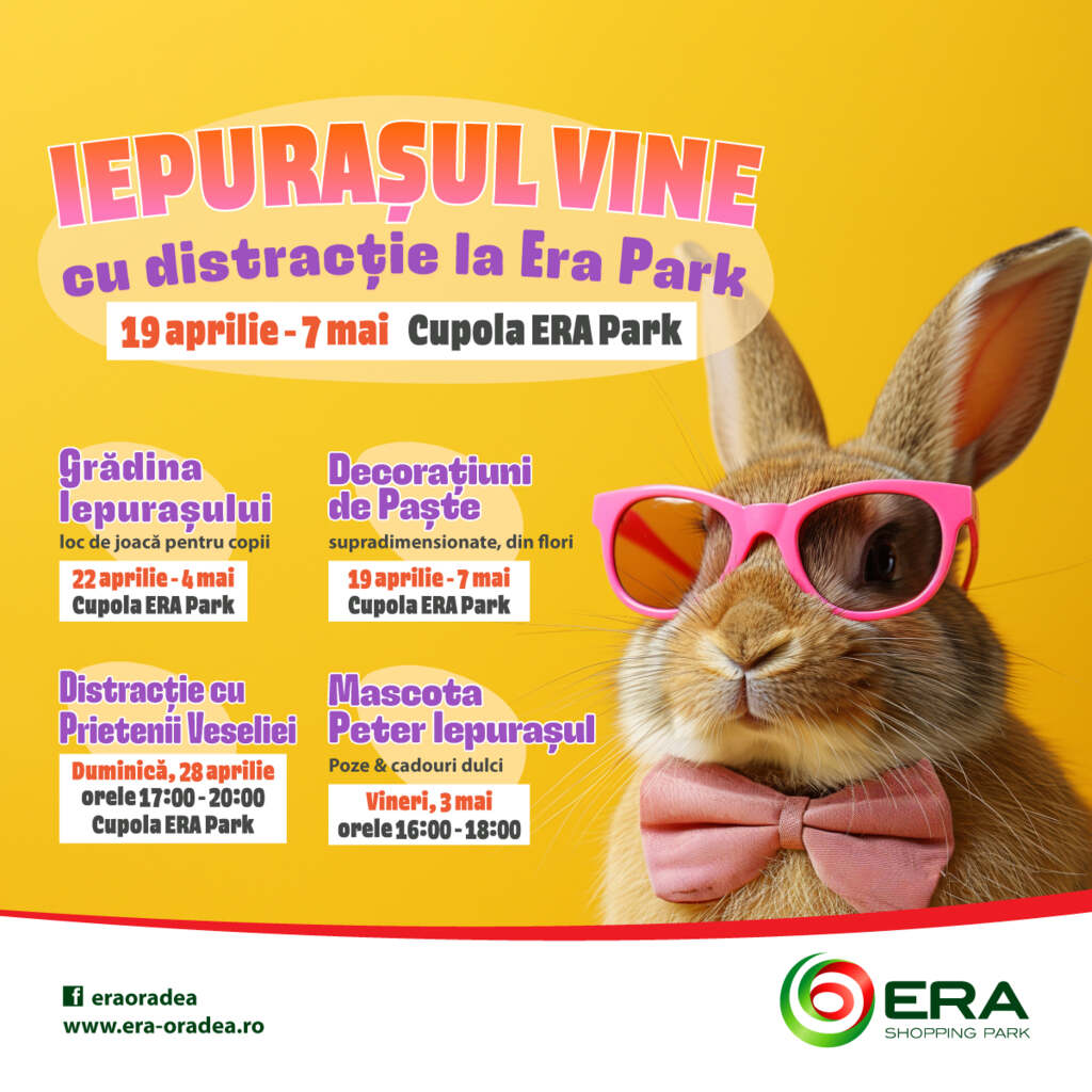 Duminică, 28 aprilie, între orele 17 și 20, în aceeași zonă a centrului comercial, Prietenii Veseliei îi așteaptă pe cei mici la distracție. Trucuri de magie pentru curioși, curse cu obstacole pentru iepurași, jocuri amuzante în familie – într-un decor adecvat, cu muzică, dans și picturi pe față – sunt câteva dintre momentele cheie ale zilei. Inedit va fi atelierul de creativitate adaptat acestei sărbători, în care prichindeii vor fi provocați să facă picturi pe ouă din ipsos.