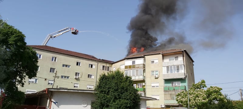 Știrea inițială: Incendiul s-a produs ultimul etaj al unui bloc cu 4 etaje. Un apartament a luat foc iar flăcările s-au propagat la acoperișul clădirii.