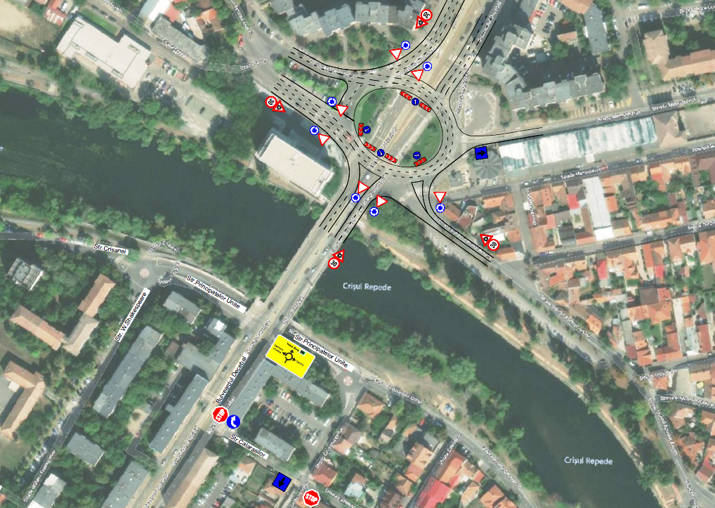- De asemenea, intersecția de dinaintea intrării pe Podul Decebal (zona Vandana) va fi transformată săptămâna aceasta într-o mare girație. Astfel, șoferii care vin dinspre Rogerius vor avea posibilitatea să intre pe pod.