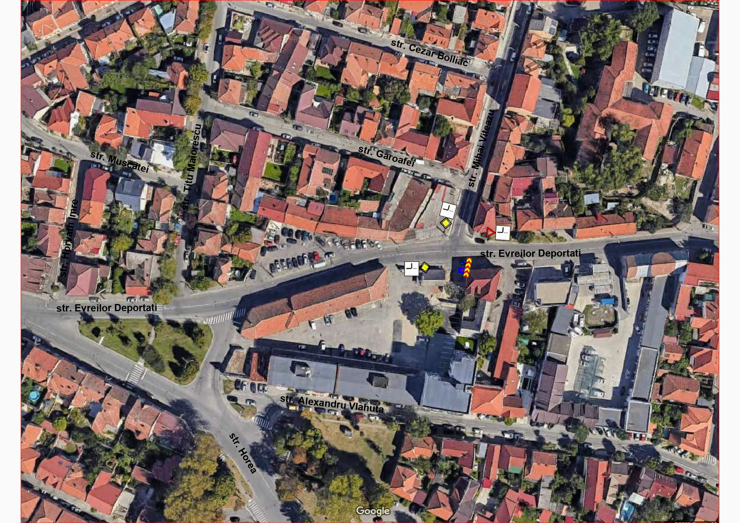 3. Intersecția str. Evreilor Deportați cu str. Mihai Viteazul va fi modificată, în sensul acordării de prioritate pentru fluxul de circulație str. Horea – str. Evreilor Deportați – str. Mihai Viteazul, în vederea fluidizării traficului;