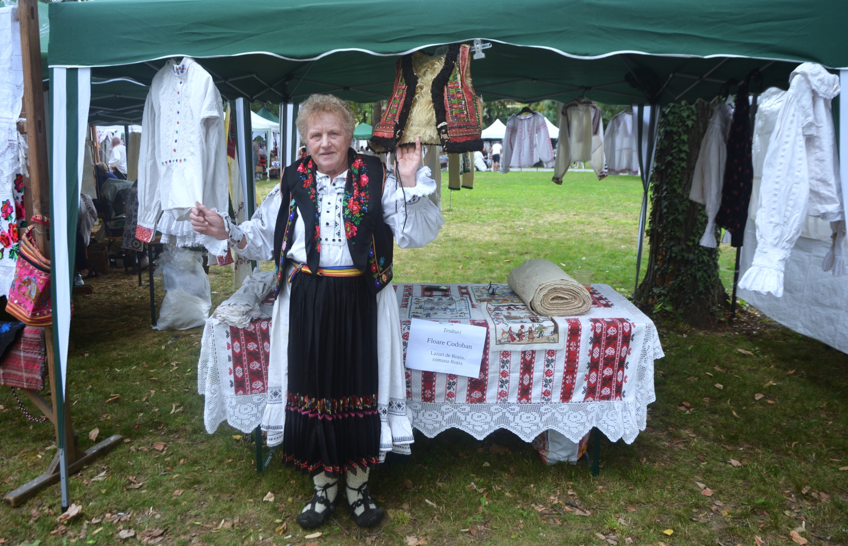 Floare Codoban: La târgu’ ăsta vin de douăzeci şi ceva de ani, de când s-o înfiinţat. Cred că am lipsit de vreo două-trei ori, când mi-o fost fetele mai mici, aveam şi lucru mult acasă şi venea numai bărbatu-meu.