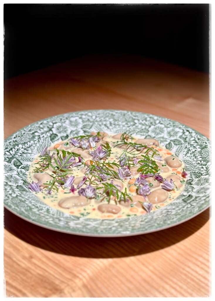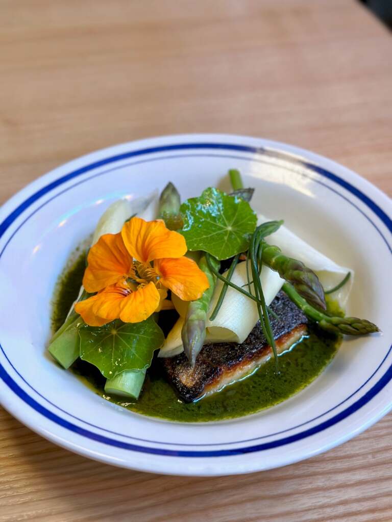 • file de pește sălbatic, beurre noisette, ierburi și praz