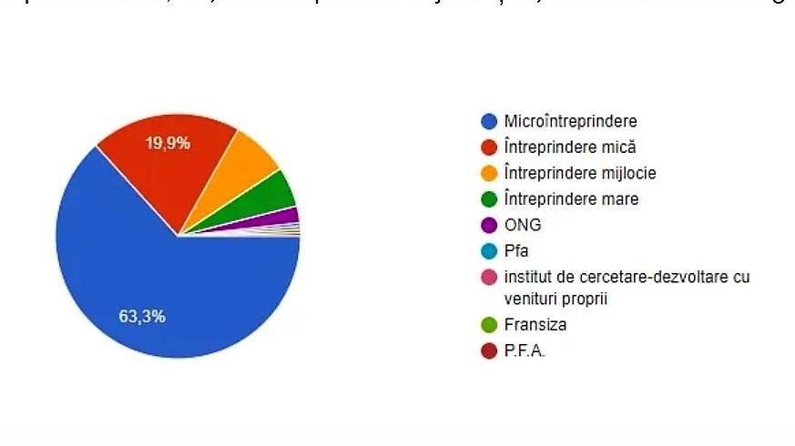 Respondenții sondajului au fost în proporţie de 63,3% microîntreprinderi, 19,9% întreprinderi mici, 10,1% întreprinderi mijlocii și 6,7% alte forme de organizare.