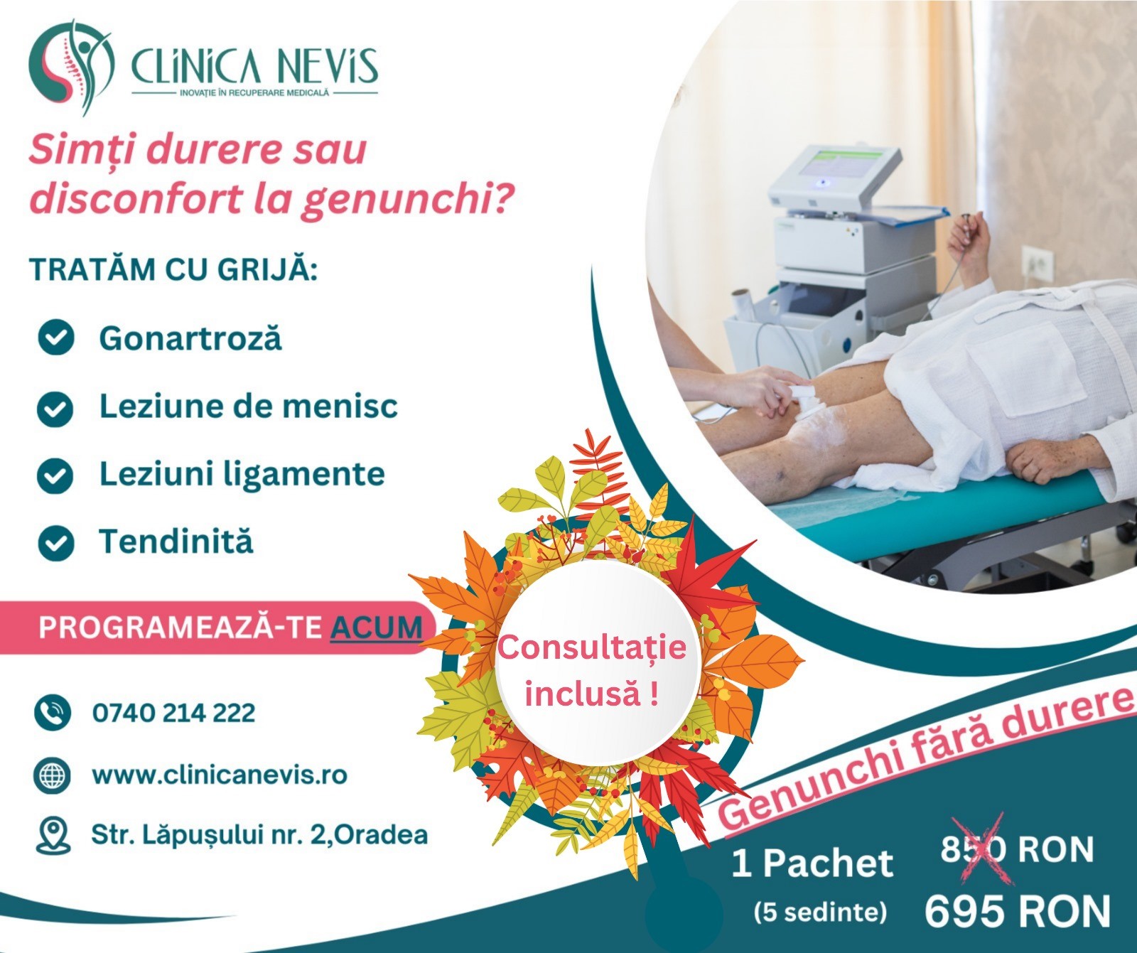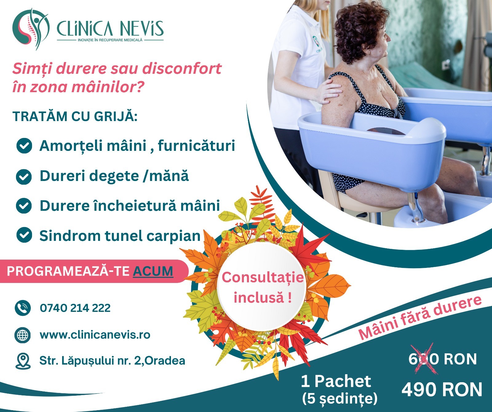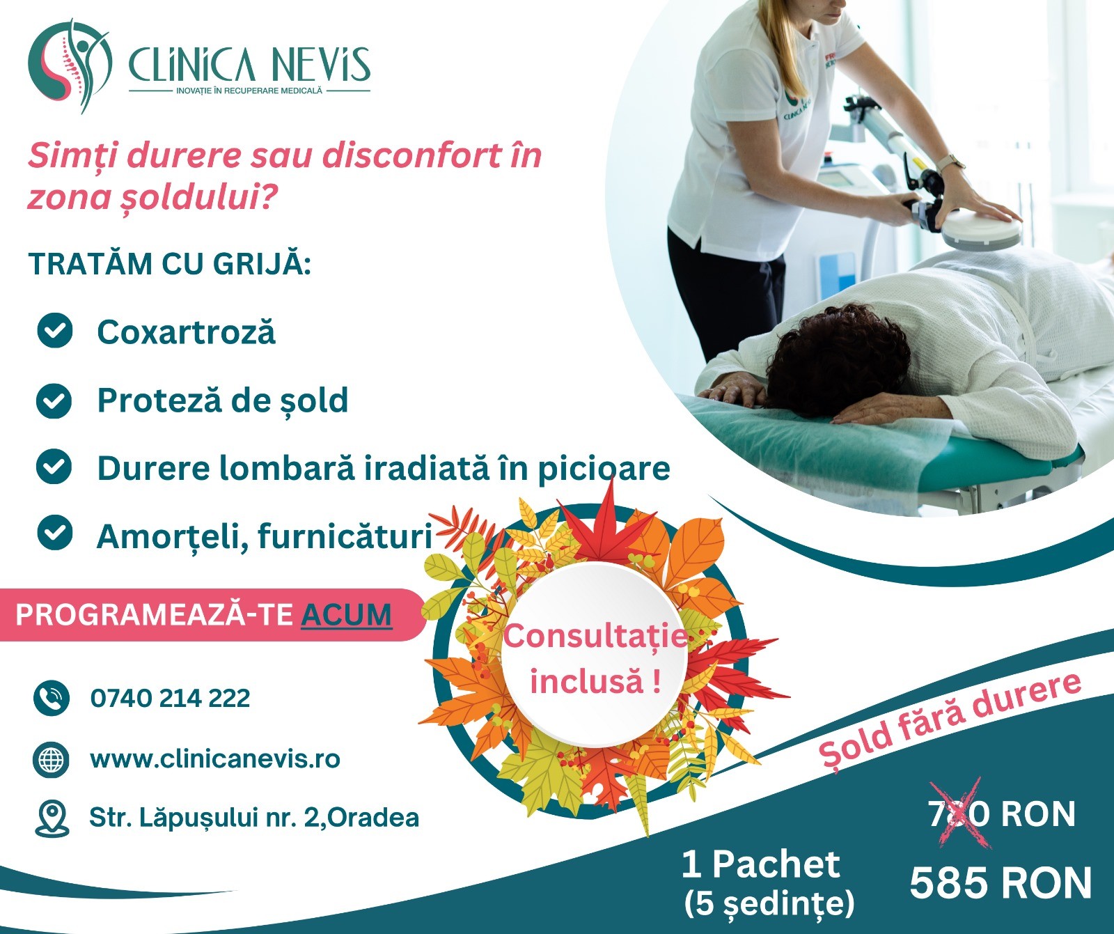 Telefon: 0740 214 222. Pentru mai multe detalii, vizitați pagina noastră de Facebook Clinica Nevis sau Instagram: clinicanevis sau site-ul oficial www.clinicanevis.ro