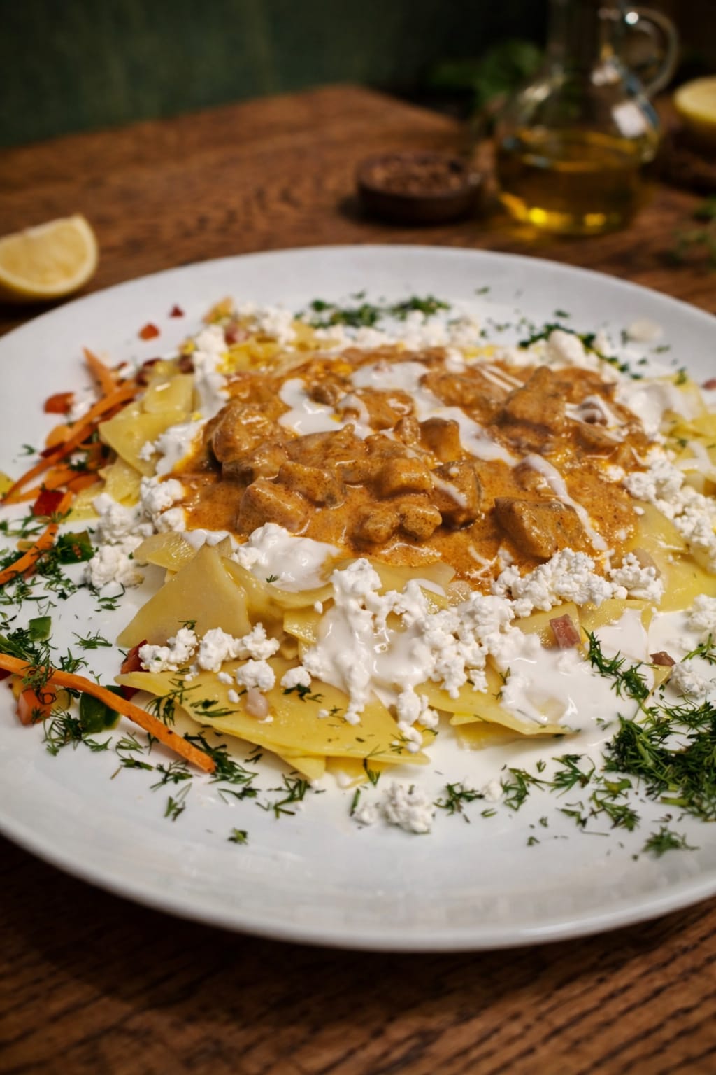 Găluștele de casă sunt combinate cu brânză de burduf, slănină crocantă și mărar proaspăt. Este rustic, intens și sincer — exact cum era mâncarea odinioară.