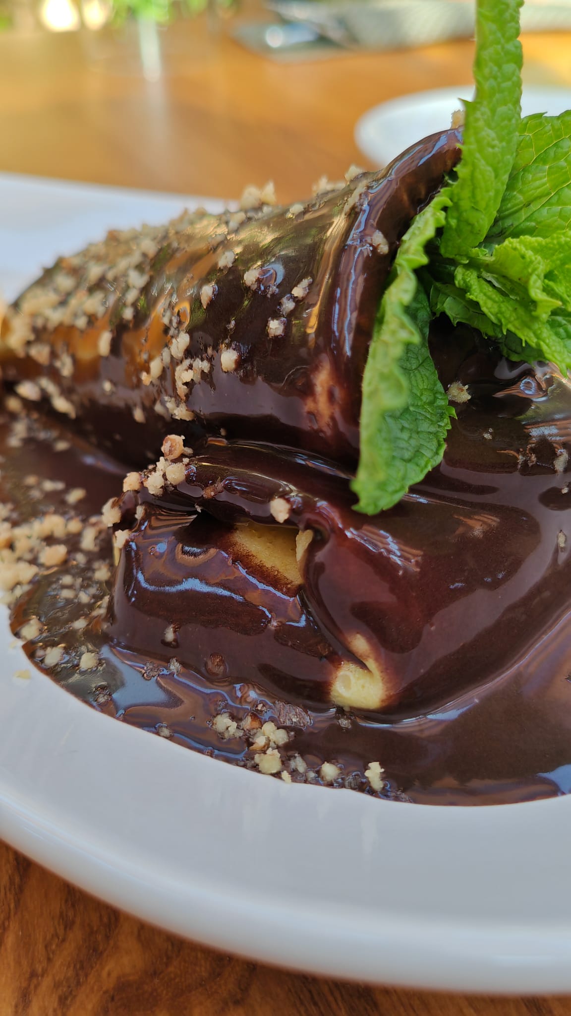Clătite Gundel – fine, umplute cu cremă fiartă de nucă și îmbrăcate în ganaj de ciocolată