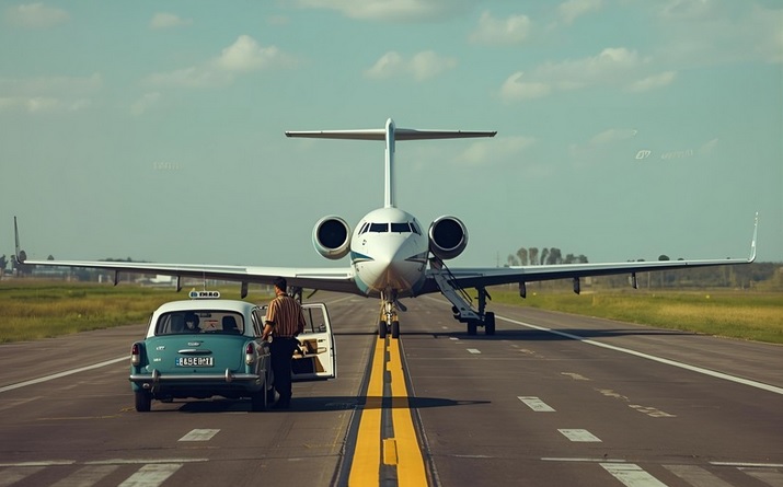 Până la urmă au schimbat strategia şi au hotărât să atace avionul la sol, pe pistă. Au convins un taximetrist să îi ducă în viteză pe pistă, până în faţa avionului tip Iliuşin 14 (IL 14). Cei şase aveau la ei arme de vânătoare. Au tras în aer strigând: „Nu mişcaţi, mâinile sus!”. La acel moment nu apucaseră toţi pasagerii să se îmbarce, aşa încât, atunci când au văzut ameninţarea, o parte dintre ei au fugit. Printre fugari s-a aflat şi pilotul avionului. Paznicul aeronavei a fost dezarmat, iar pilotul secund, mecanicul de bord şi telegrafistul au fost ameninţaţi cu armele să urce în avion.