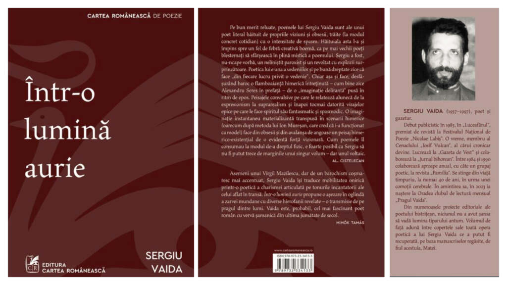 Revista de cultură „Familia” în colaborare cu Editura Cartea Românească vă invită miercuri, 25 octombrie, de la ora 18:30, la Librăria Cărturești Oradea, cu ocazia lansării unui volum de poeme postum cu totul și cu totul deosebit, „Într-o lumină aurie” (ed. a II-a, adăugită; Cartea Românească, 2023) al regretatului poet bihoreano-bistrițean Sergiu Vaida.