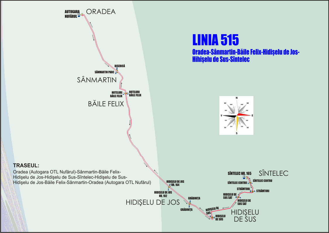 Autobuzele societăţii Oradea Transport Local care vor circula pe linia nou înfiinţată, 515, vor asigura transportul călătorilor pe această rută, începând din 1 Septembrie 2020.